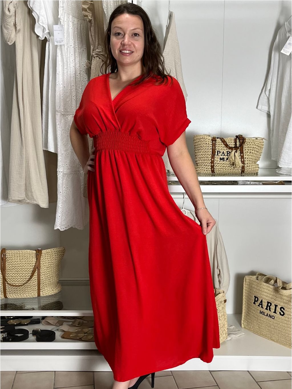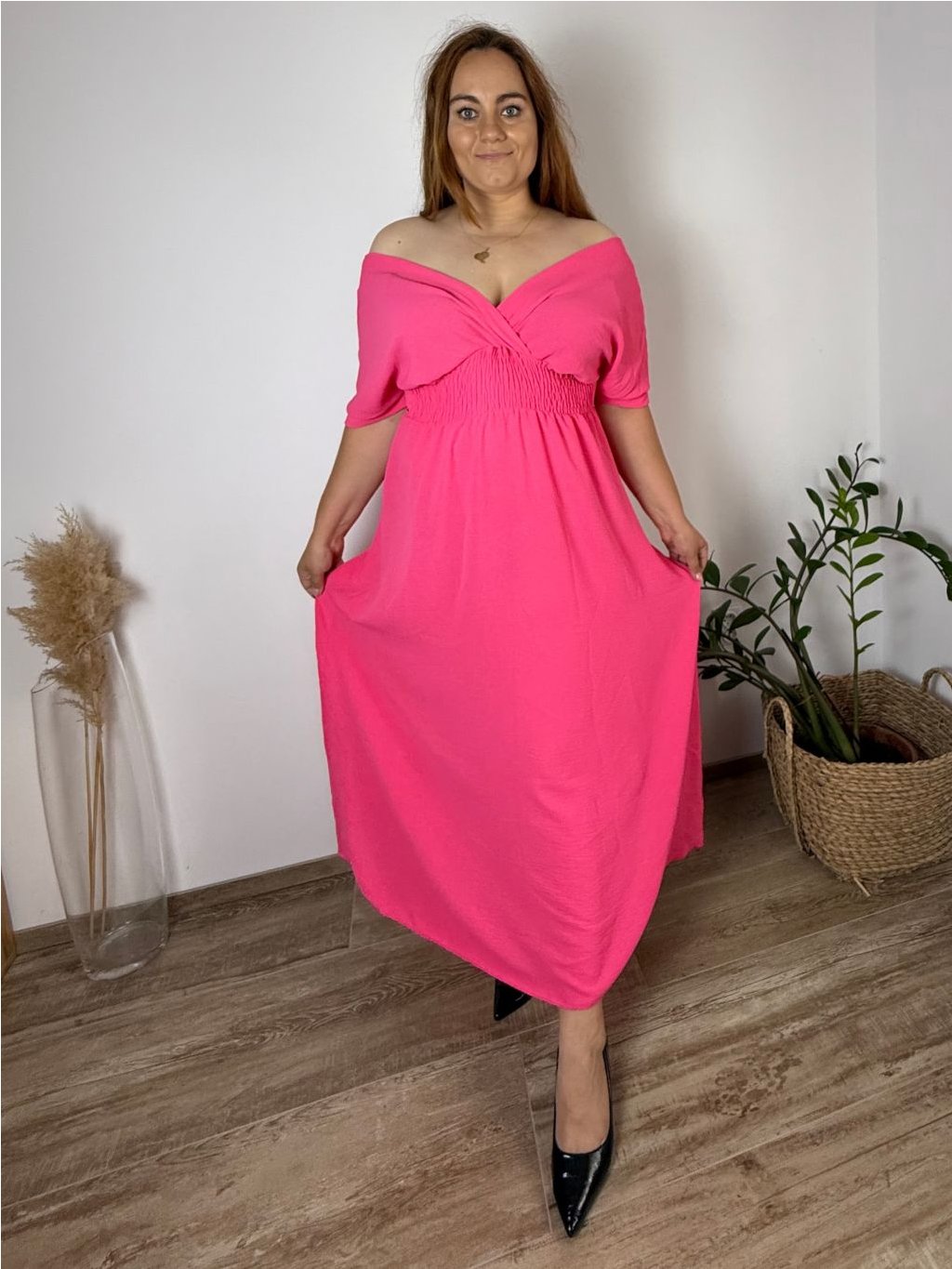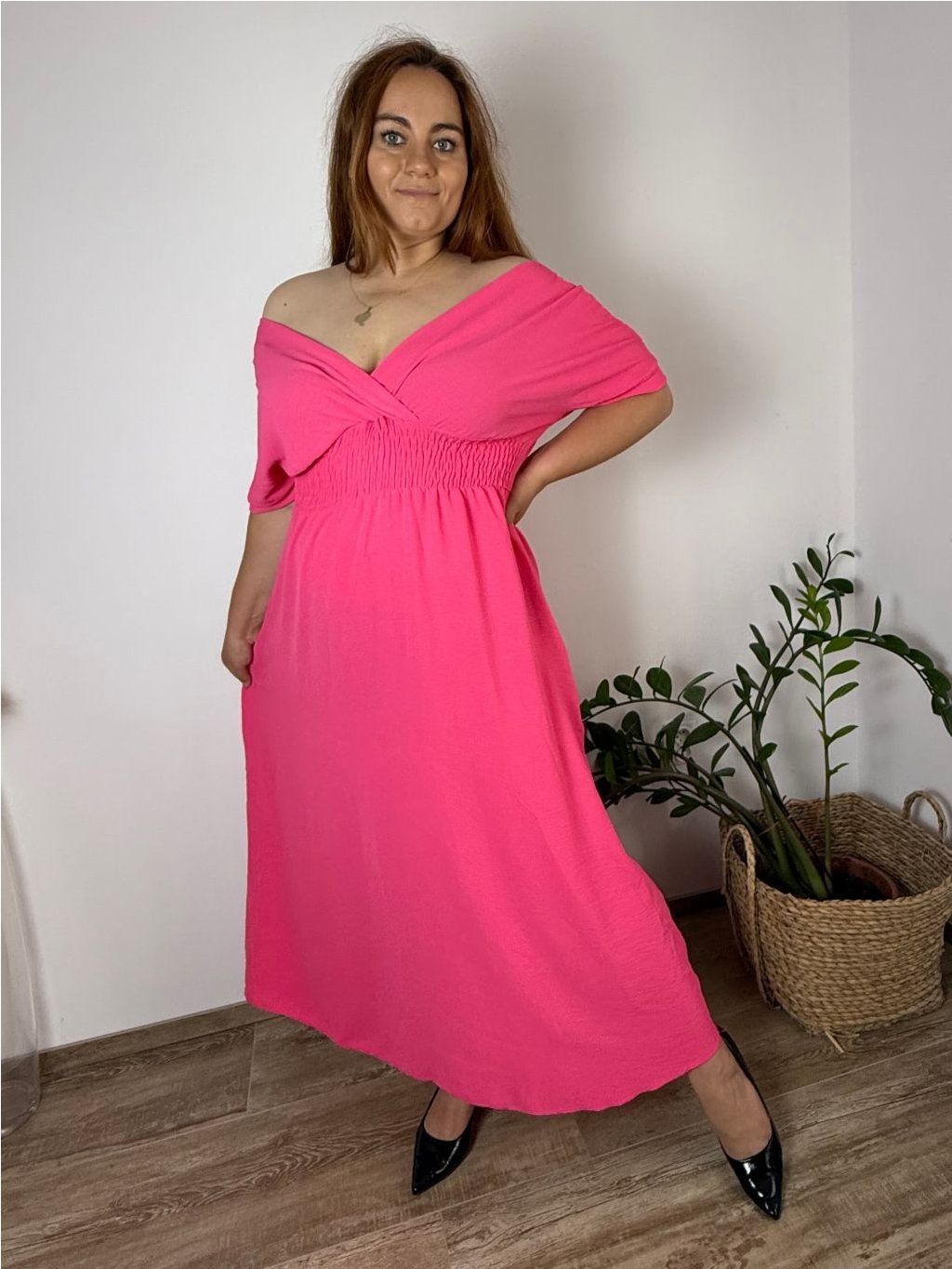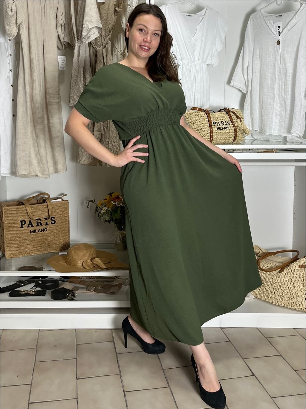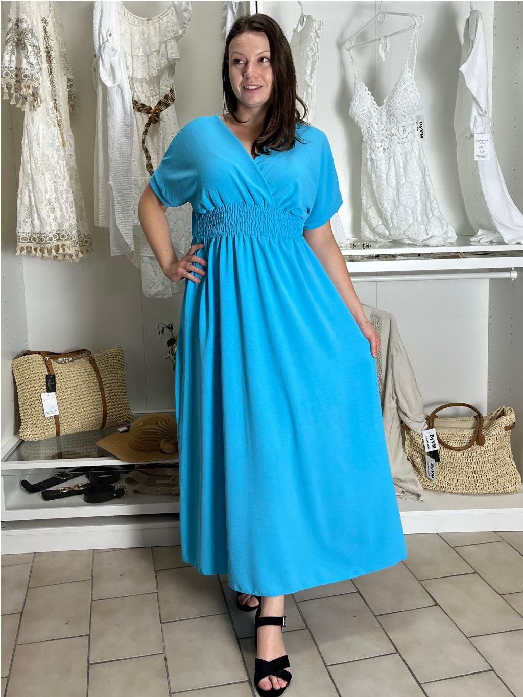 Šaty dlouhé elegantní letní krátký rukáv dámské nadrozměr ASTRA (42/44/46 ONE SIZE) ITALSKÁ MÓDA IM425422
