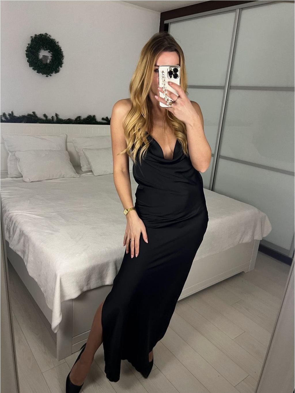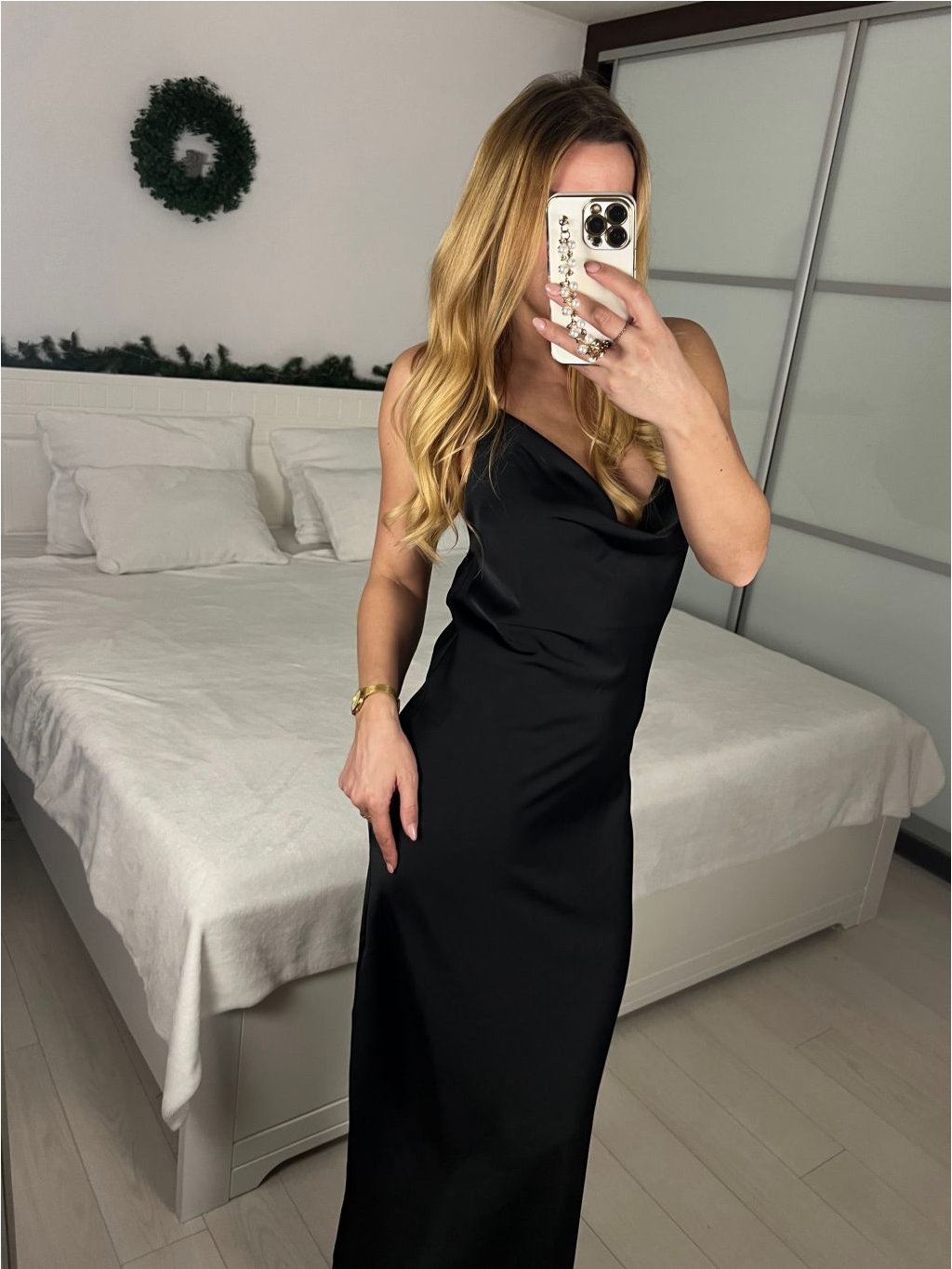 Šaty dlouhé elegantní saténové na ramínka dámské (S/M/L ONE SIZE) ITALSKÁ MÓDA IMPLP2455060075/DUR