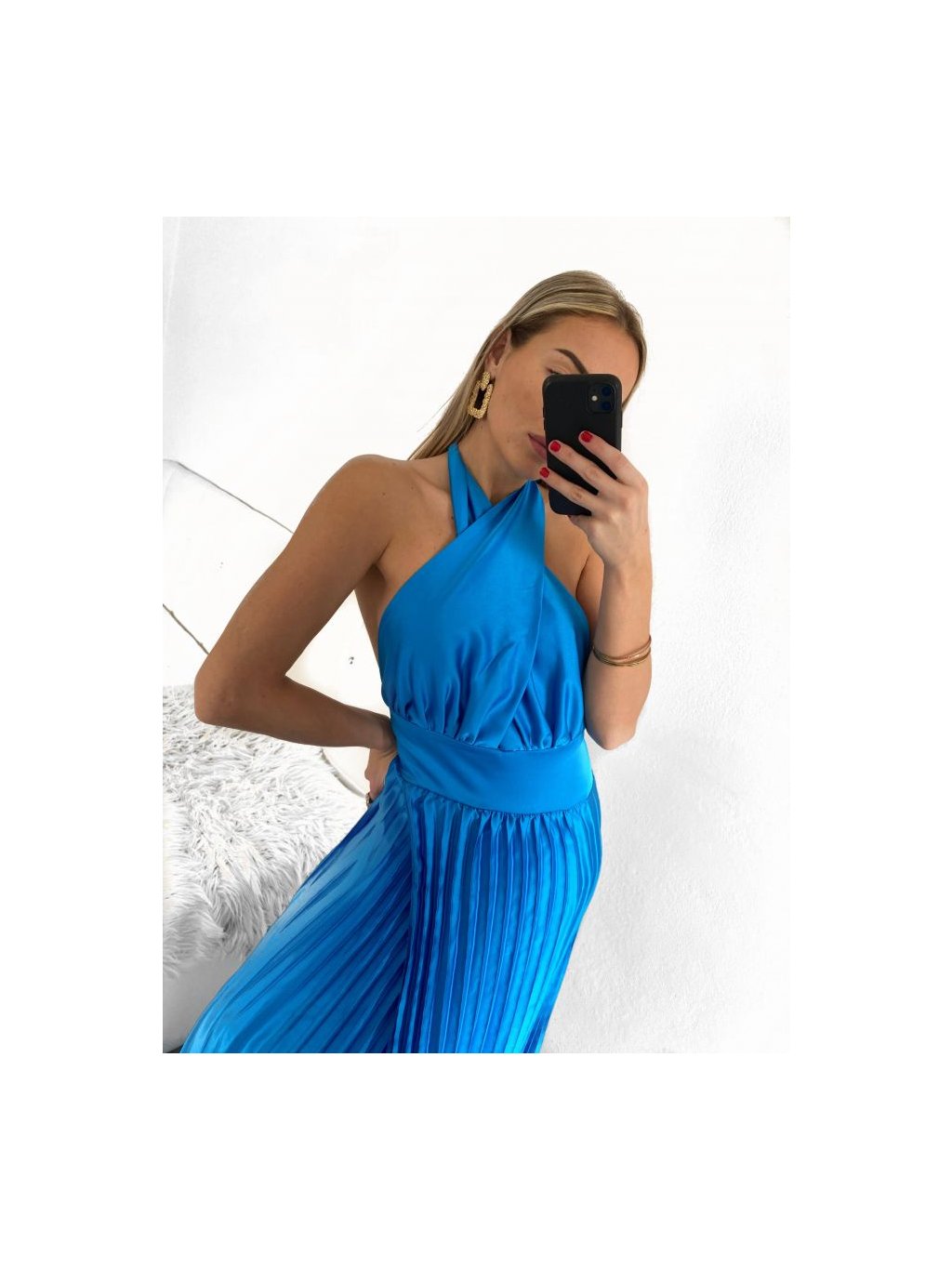 Šaty dlouhé elegantní skládané bez rukávu dámské (S/M ONE SIZE) ITALSKÁ MÓDA IMPGM2322112/DU