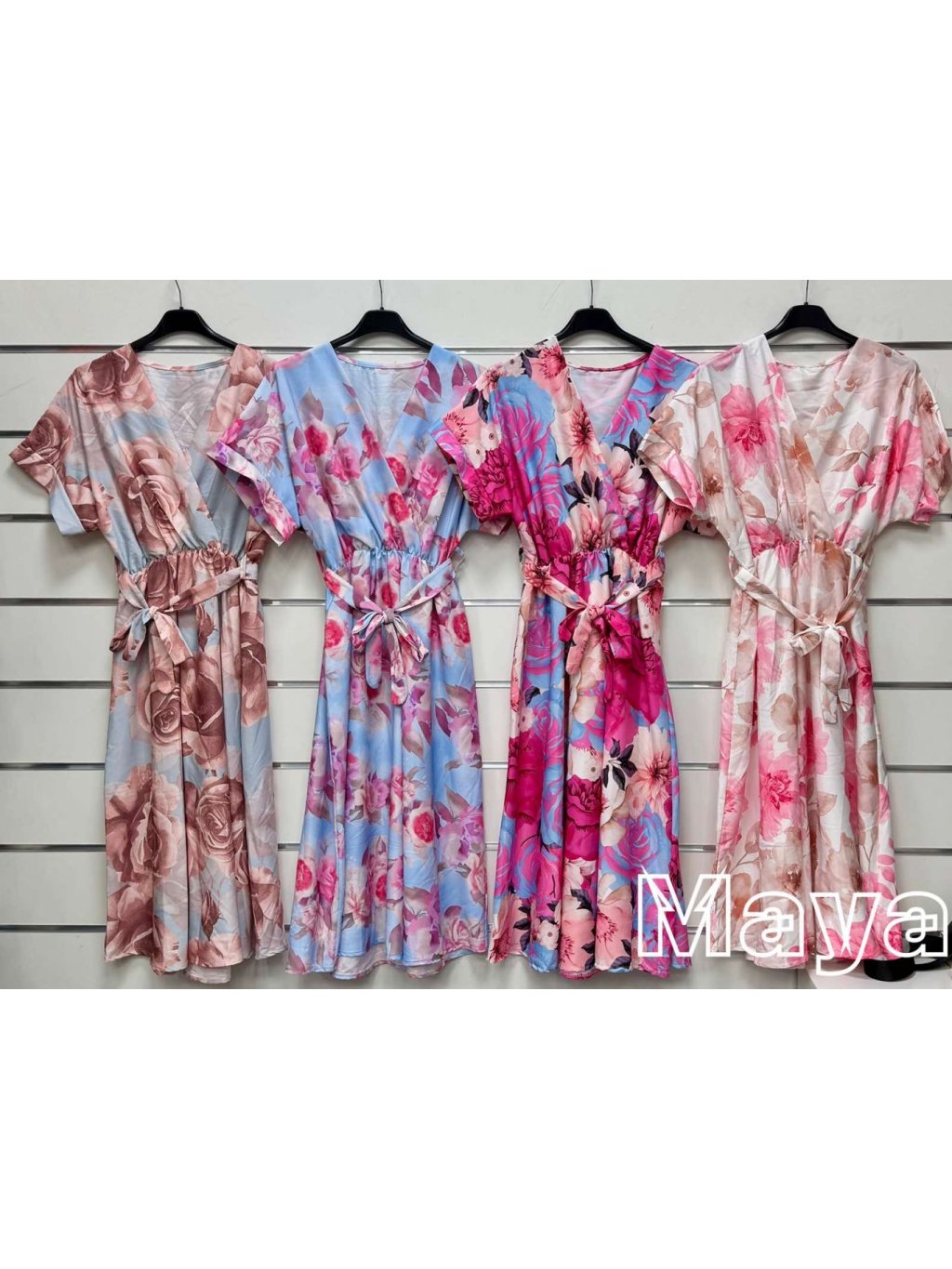 Šaty dlouhé květované krátký rukáv dámské (S/M/L ONE SIZE) ITALSKÁ MÓDA IMWMY25415