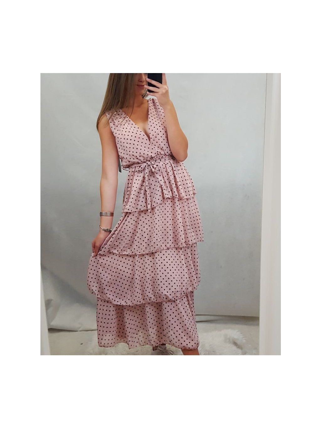 Šaty dlouhé letní dámské puntík (uni s-m) ITALSKá MóDA IM920215/starorůžová