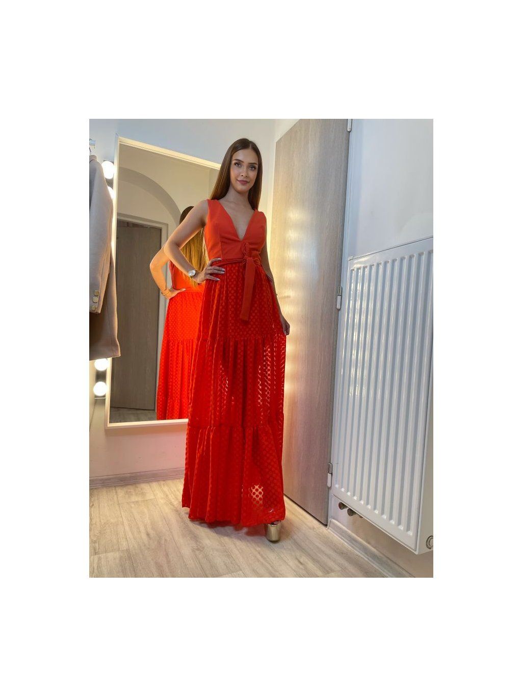 Šaty dlouhé letní dámské (uni s/m) ITALSKá MóDA IM919522/DRčervené