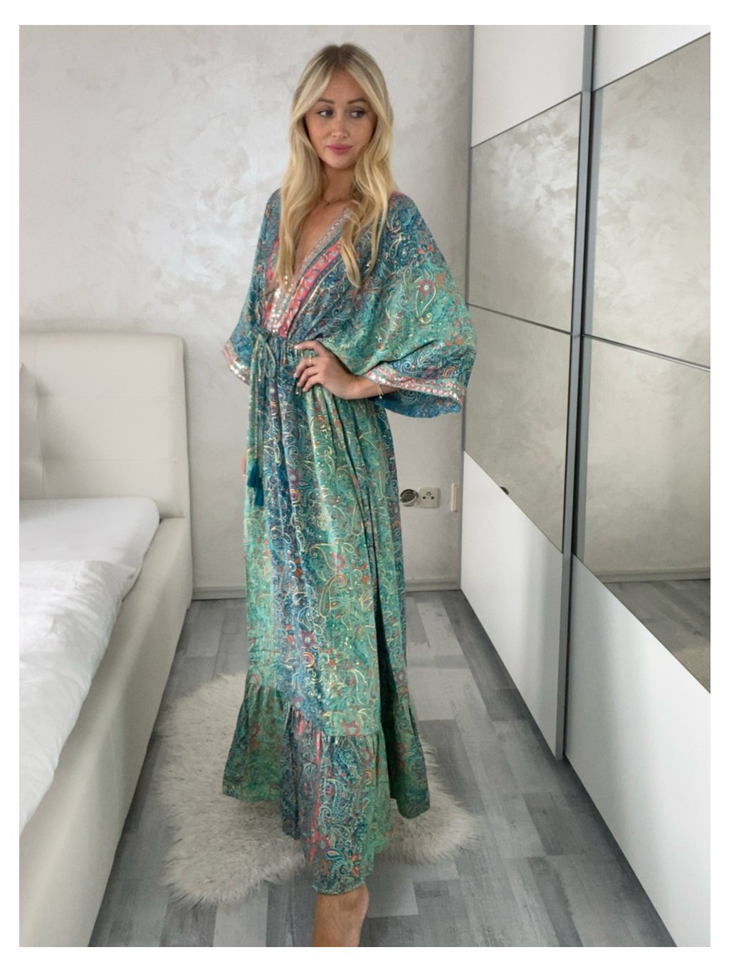 Šaty dlouhé letní dlouhý rukáv dámské LAJLA (S/M/L ONE SIZE) INDICKÁ MÓDA IMWKA25HE309G-4/DU