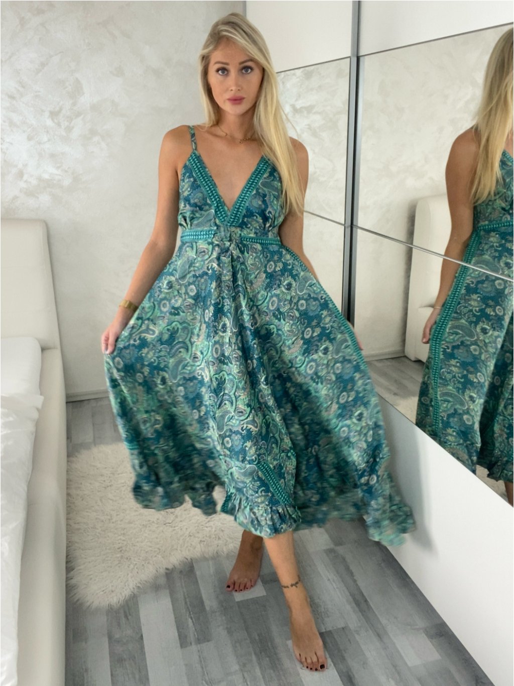 Šaty dlouhé letní na ramínka dámské RAMONA (S/M/L ONE SIZE) INDICKÁ MÓDA IMWKA251062-3/DU