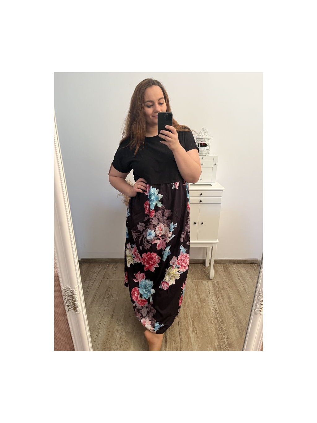 Šaty dlouhé maxi dlouhé krátký rukáv dámské nadrozměr (2XL/3XL/4XL ONE SIZE) ITALSKÁ MÓDA IMD23020A/DU