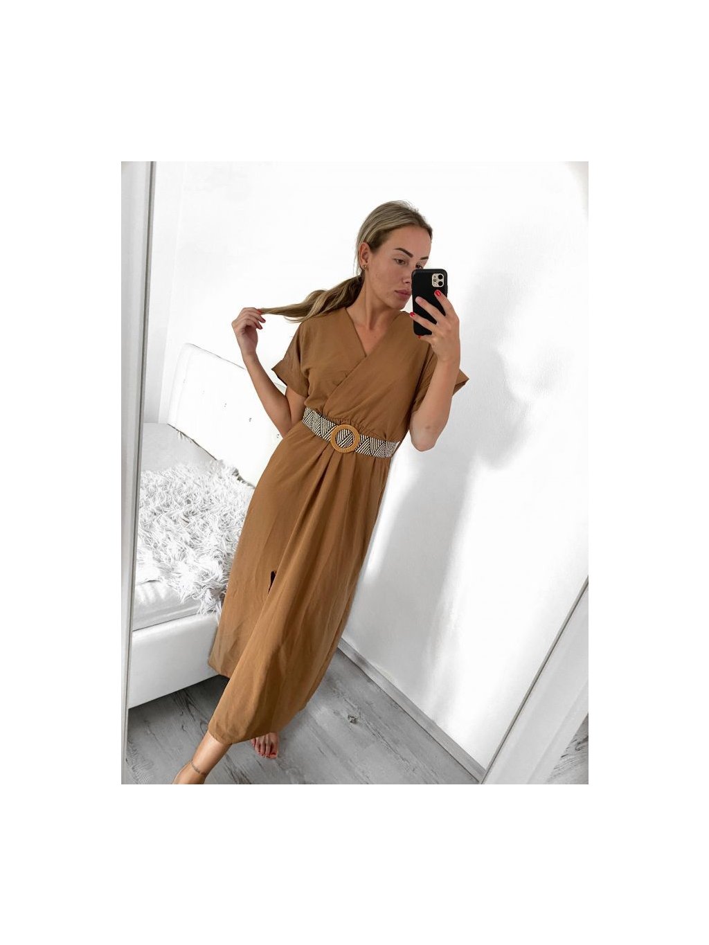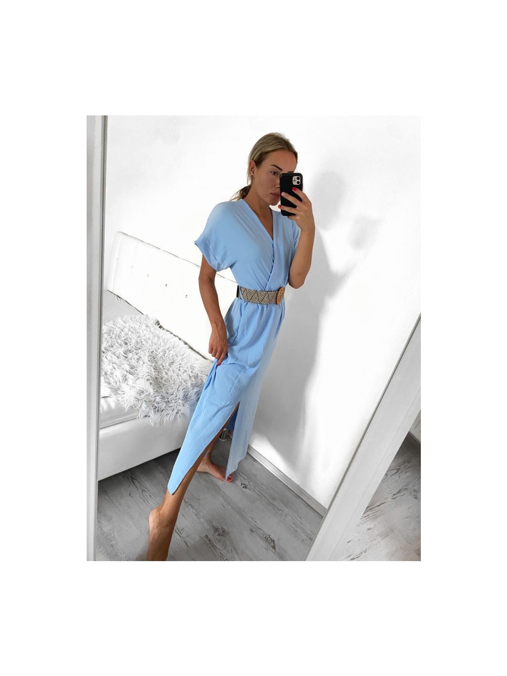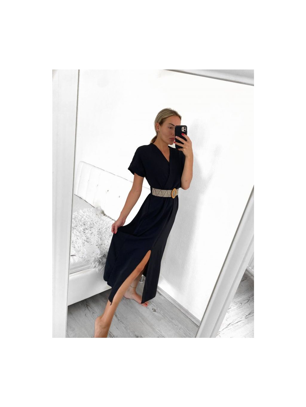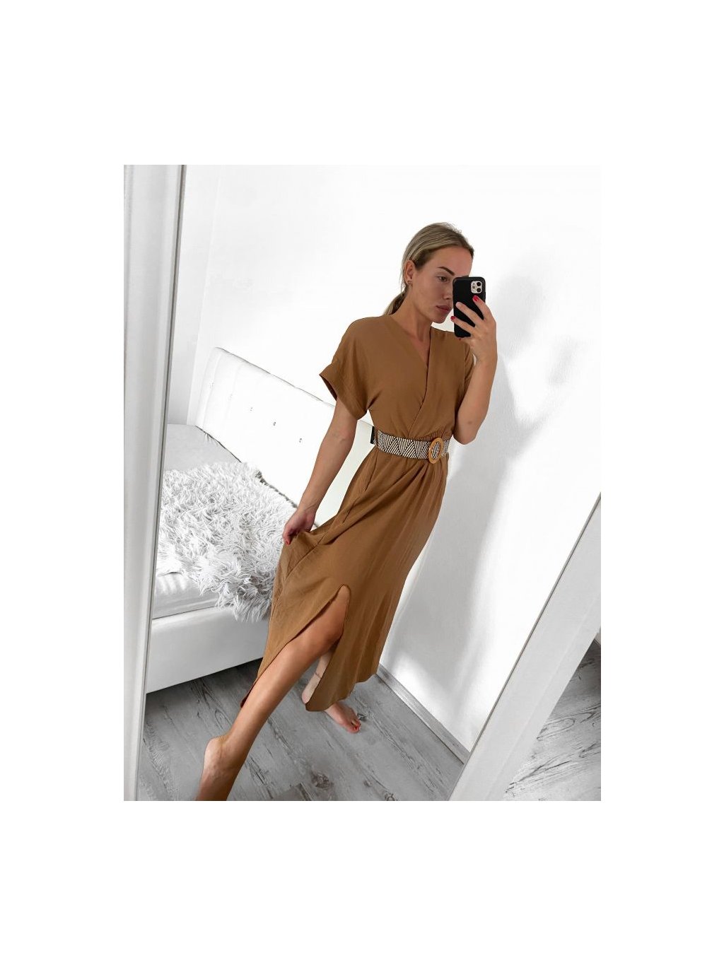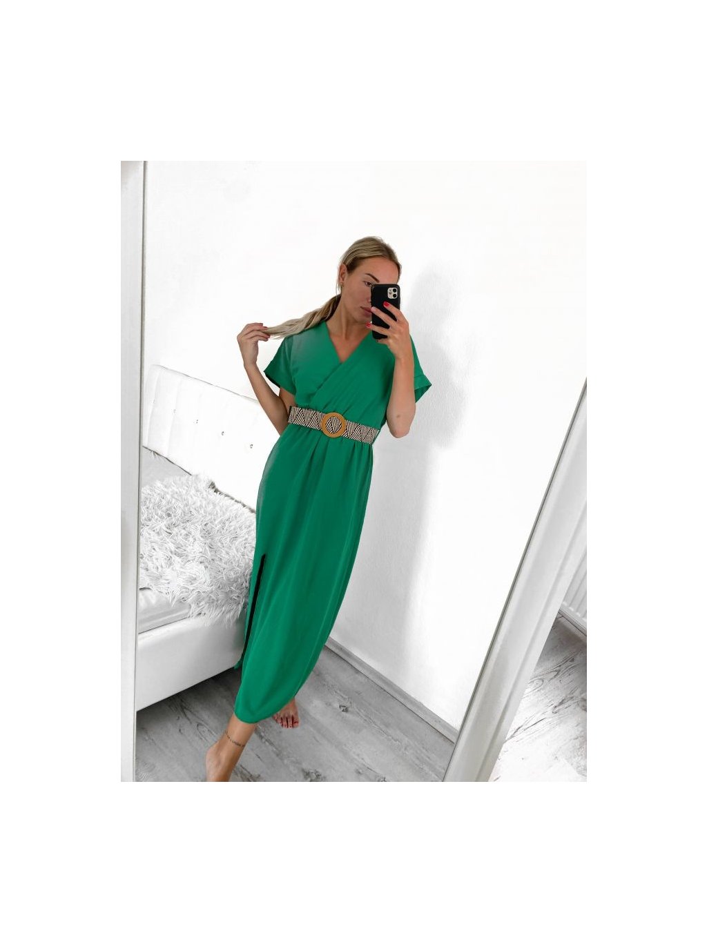 Šaty dlouhé s páskem krátký rukáv dámské (S/M ONE SIZE) ITALSKÁ MÓDA IMWA231372/DUR