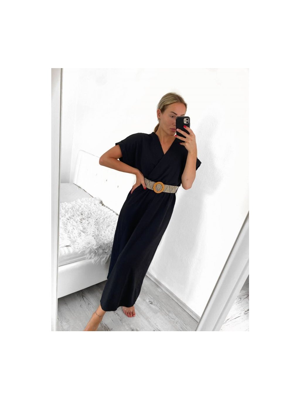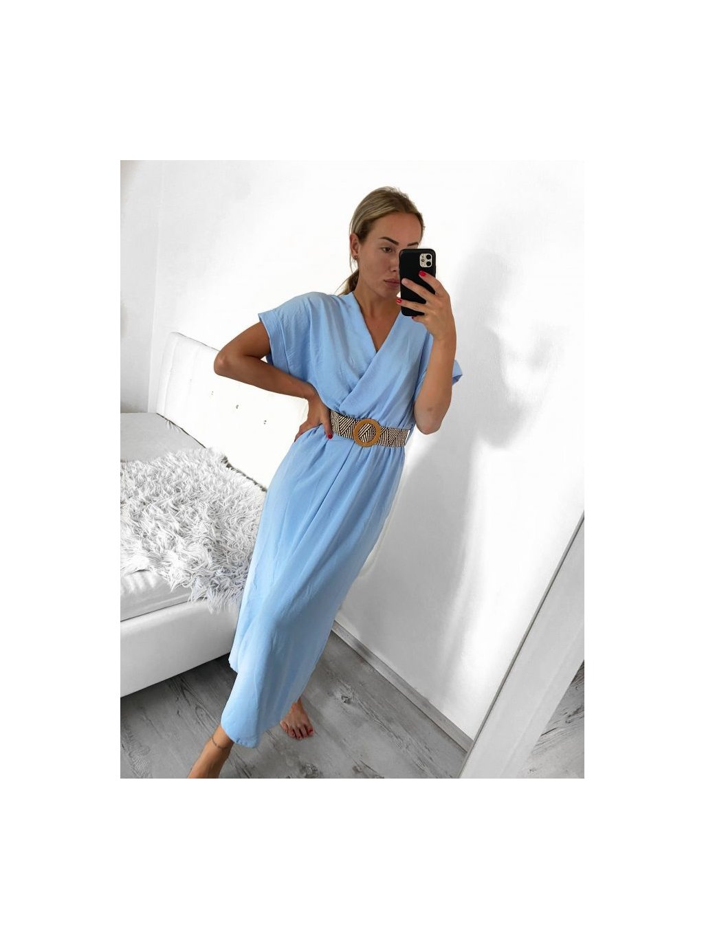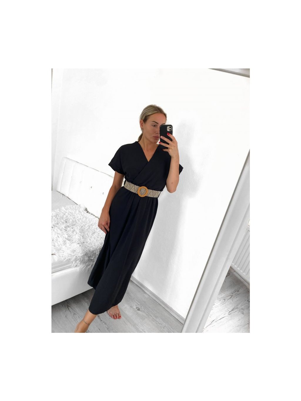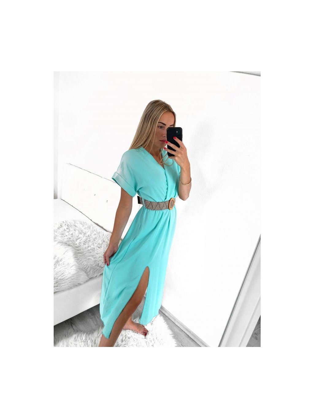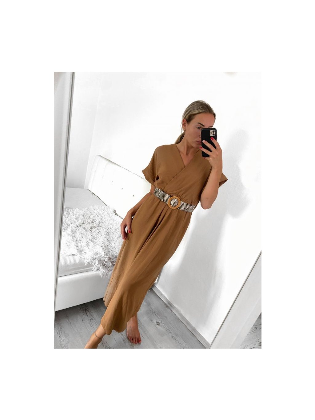 Šaty dlouhé s páskem krátký rukáv dámské (S/M ONE SIZE) ITALSKÁ MÓDA IMWA231372/DUR