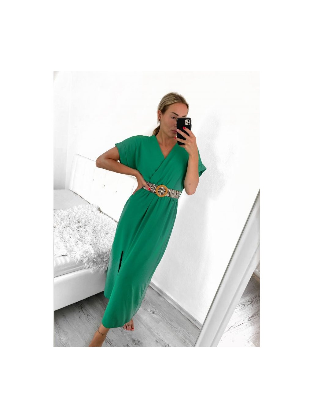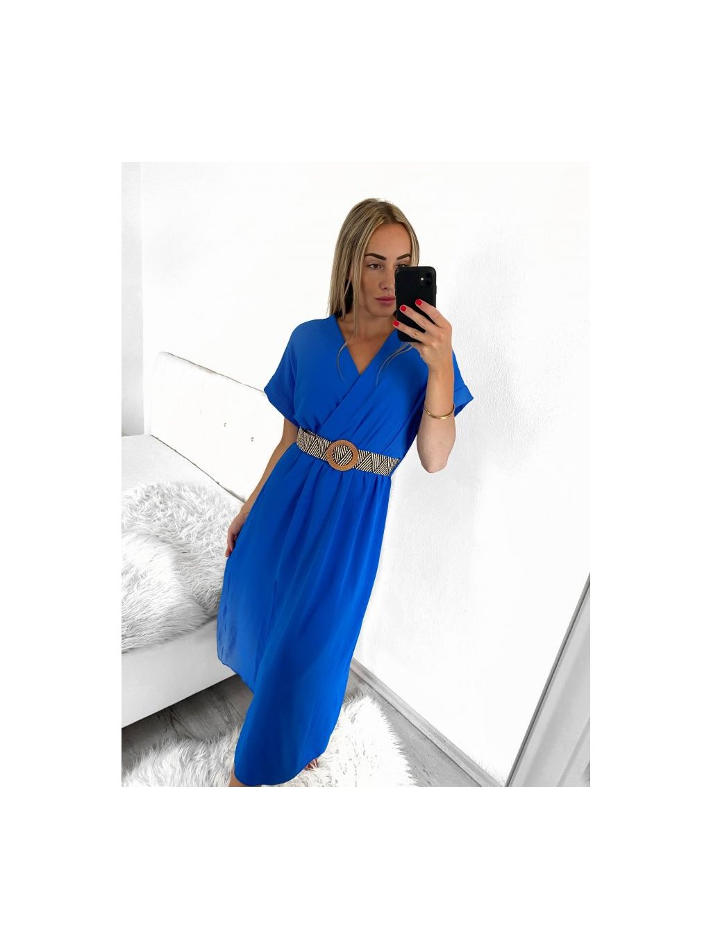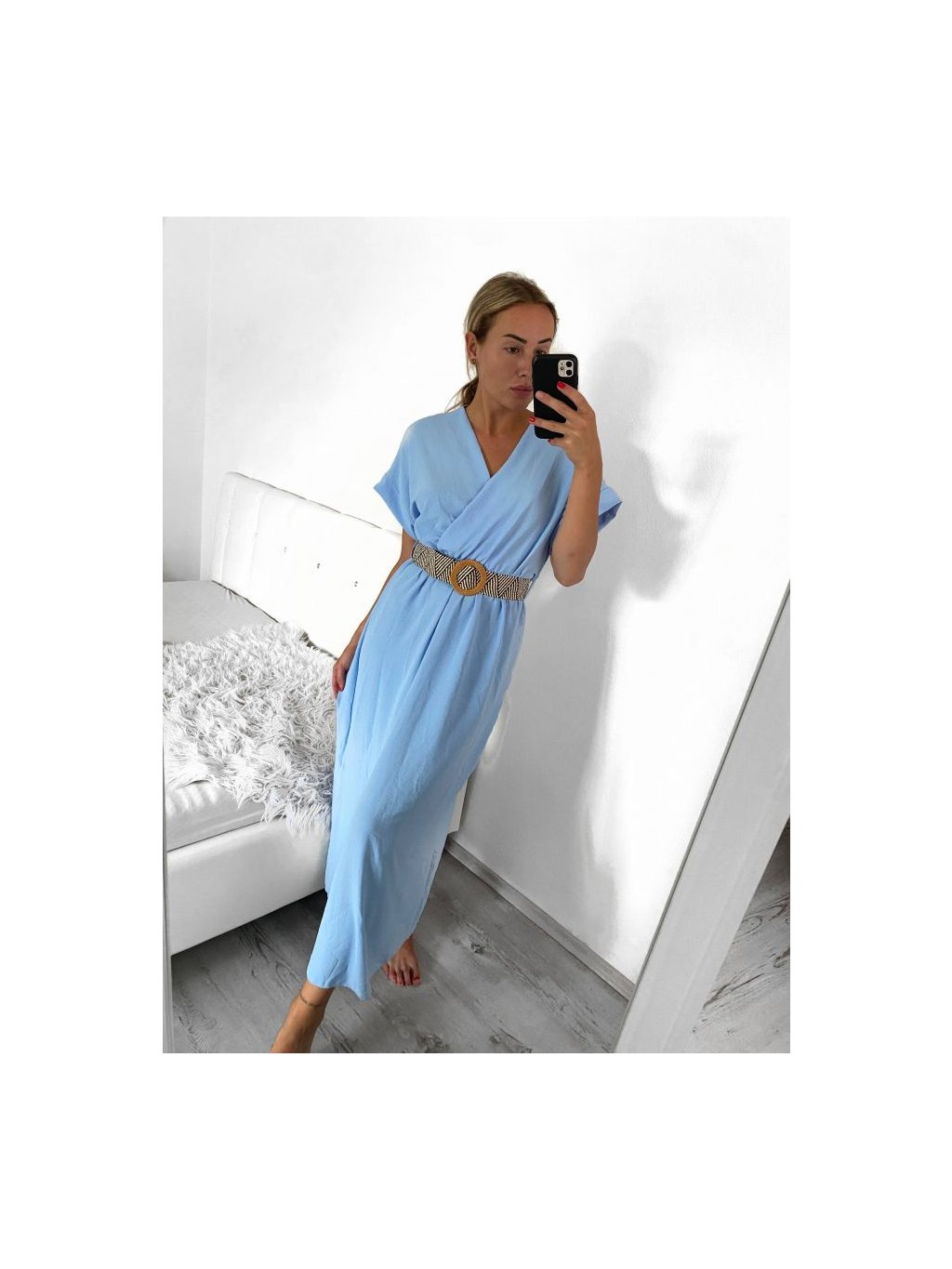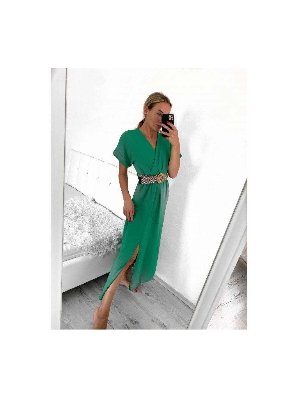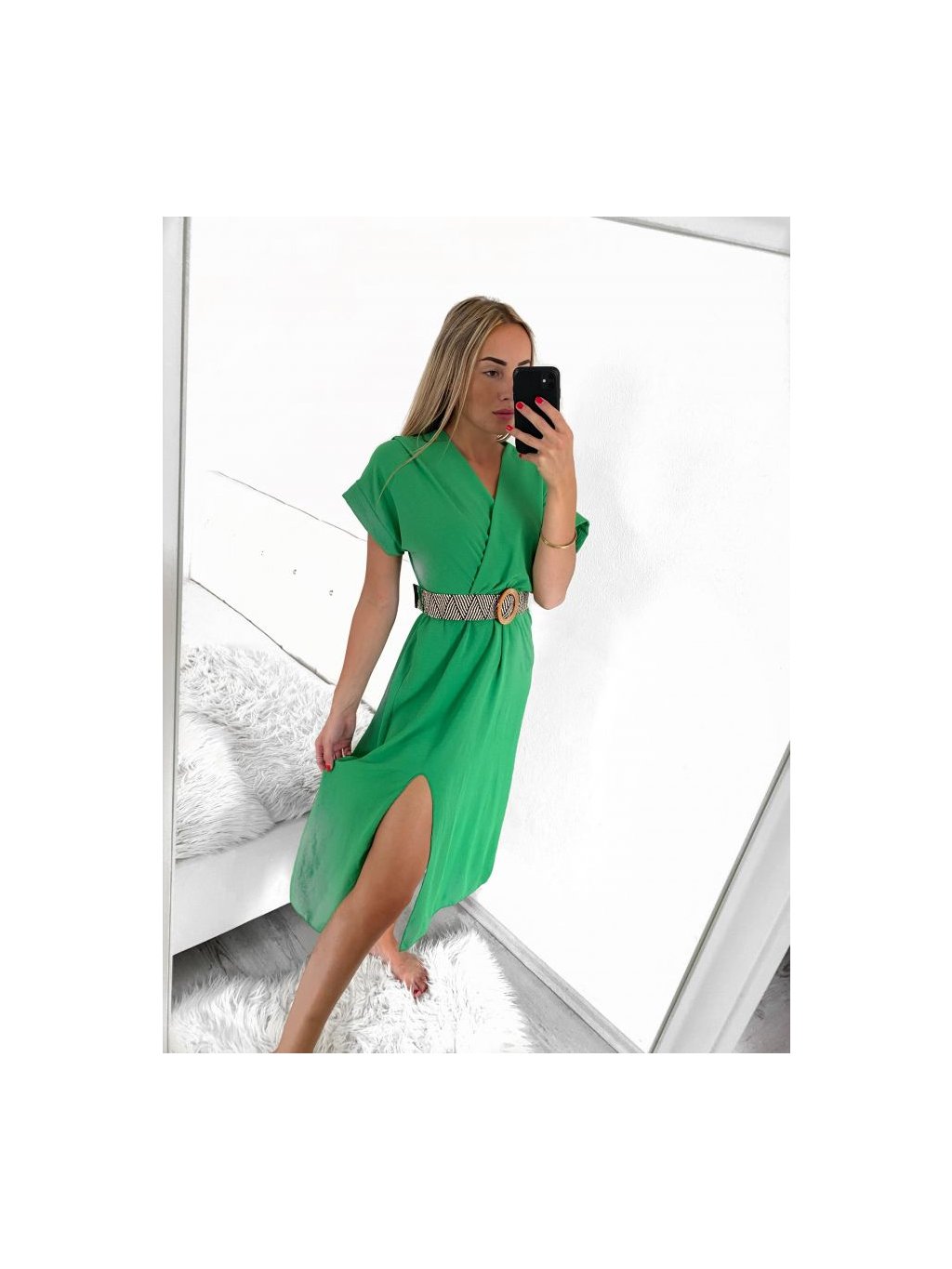 Šaty dlouhé s páskem krátký rukáv dámské (S/M ONE SIZE) ITALSKÁ MÓDA IMWA231372/DUR