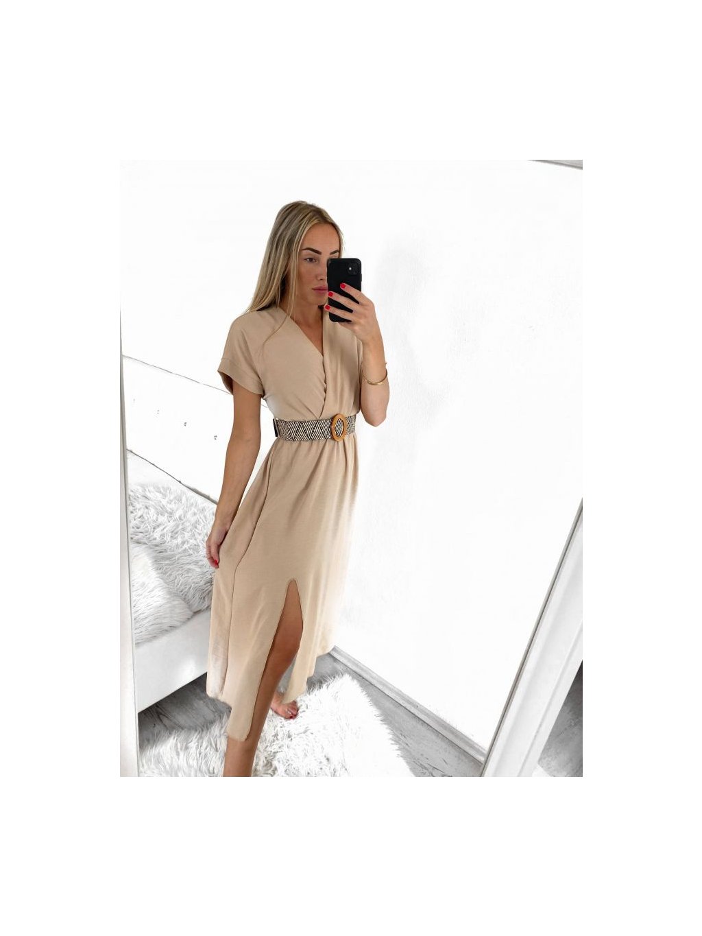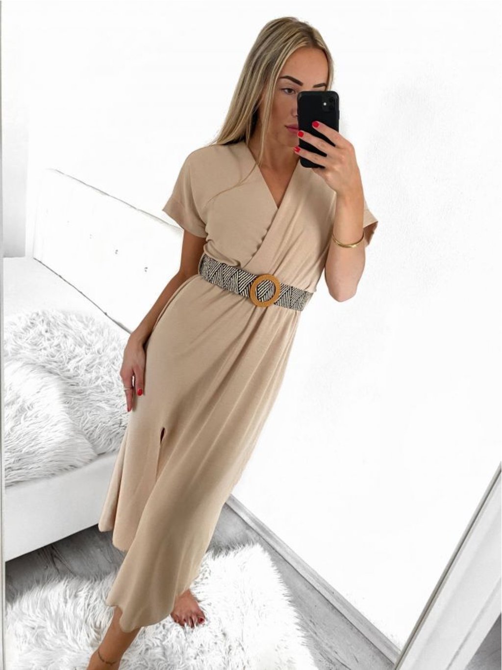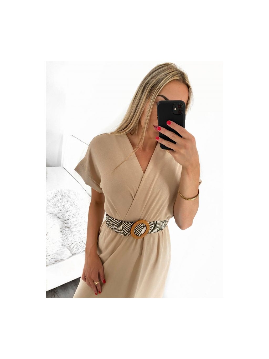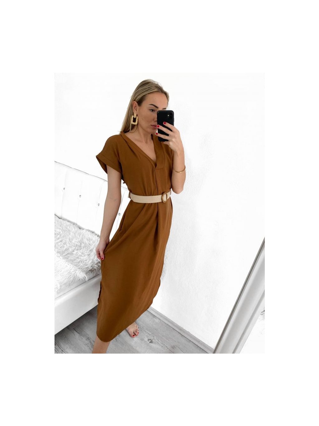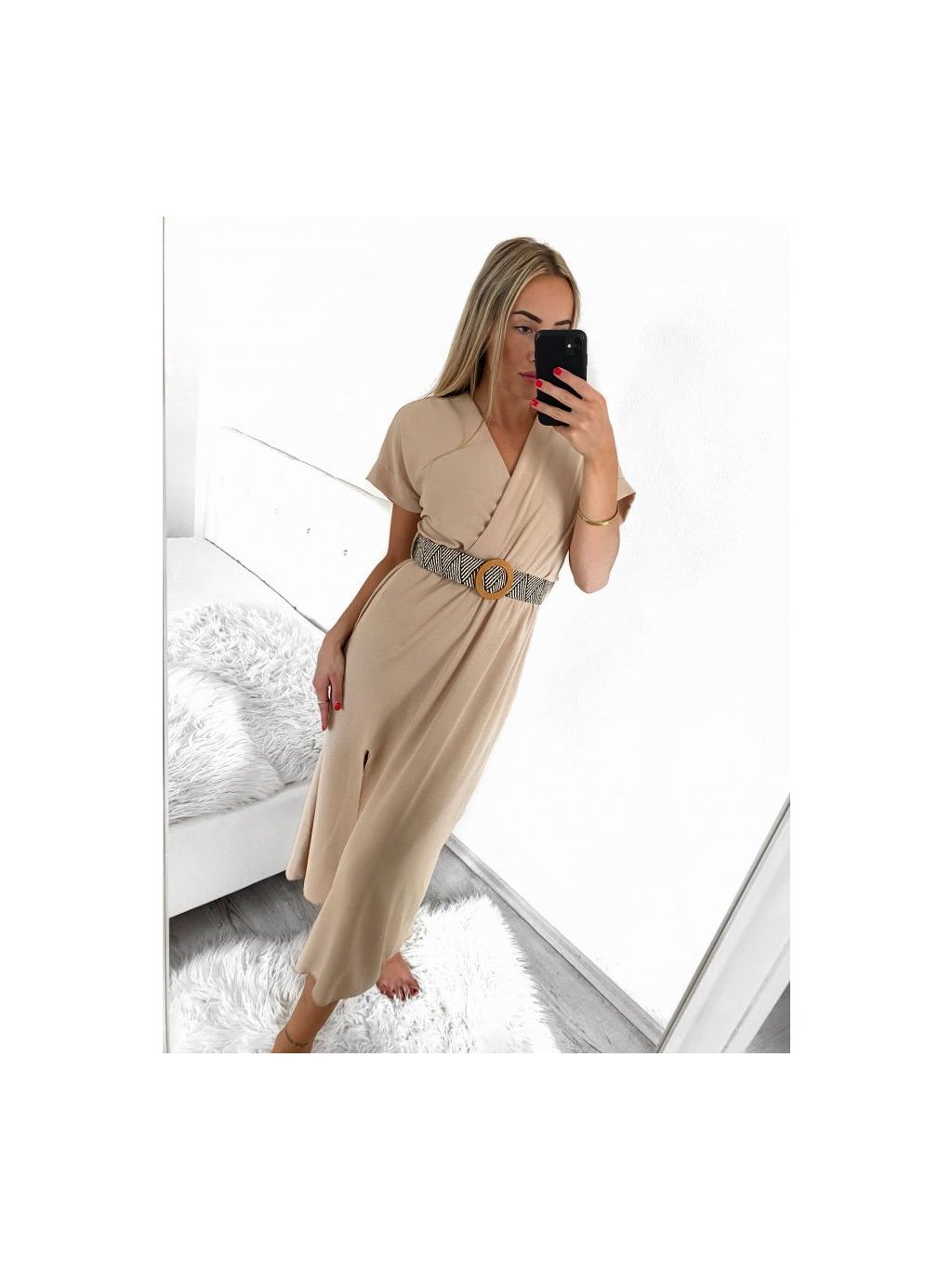 Šaty dlouhé s páskem krátký rukáv dámské (S/M ONE SIZE) ITALSKÁ MÓDA IMWA231372/DUR