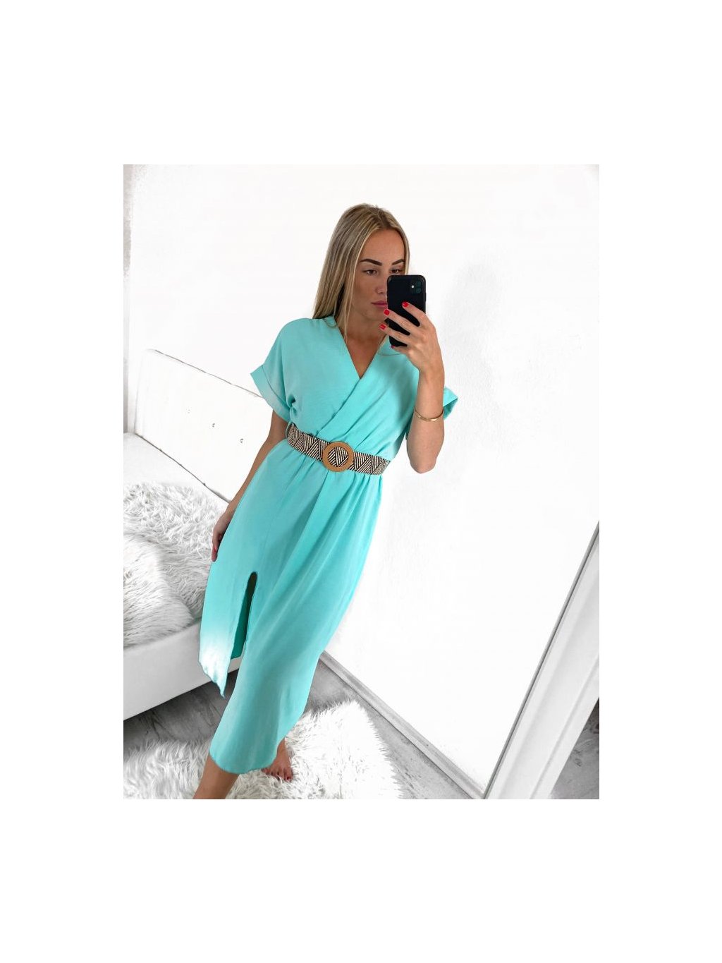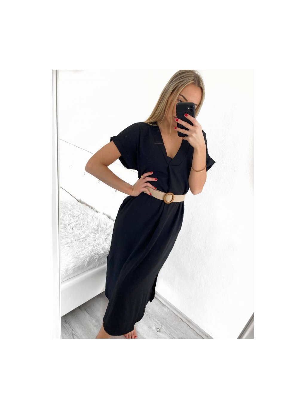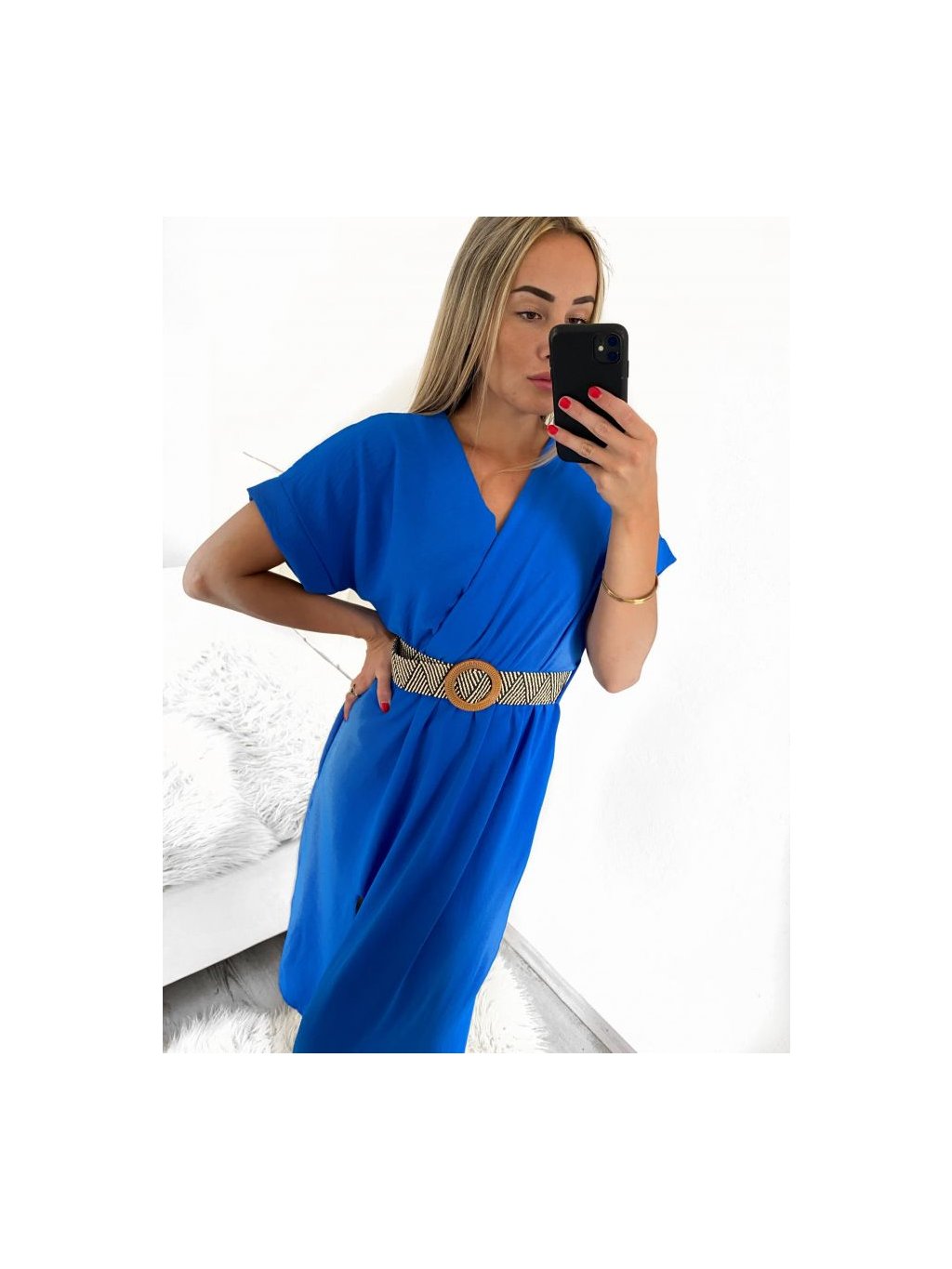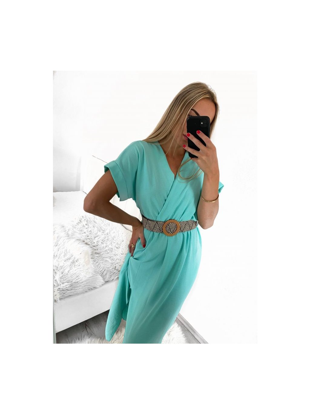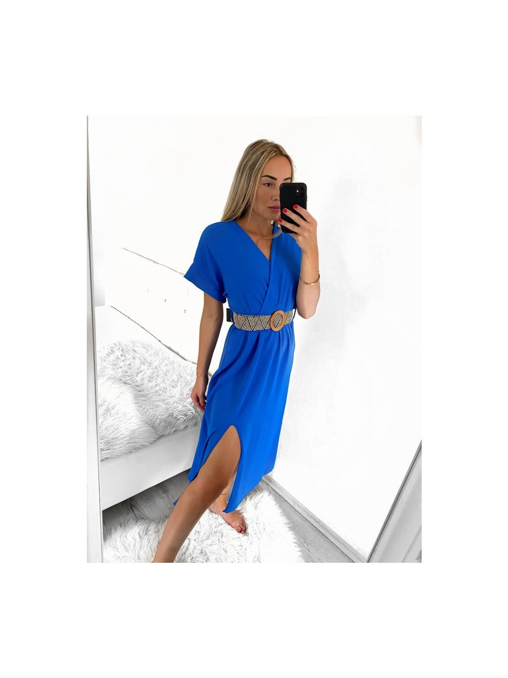 Šaty dlouhé s páskem krátký rukáv dámské (S/M ONE SIZE) ITALSKÁ MÓDA IMWA231372/DUR