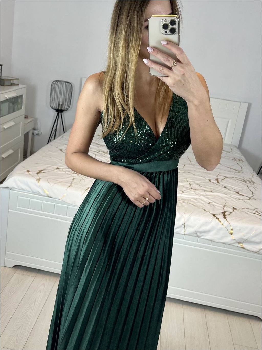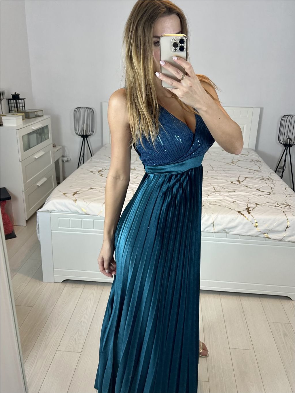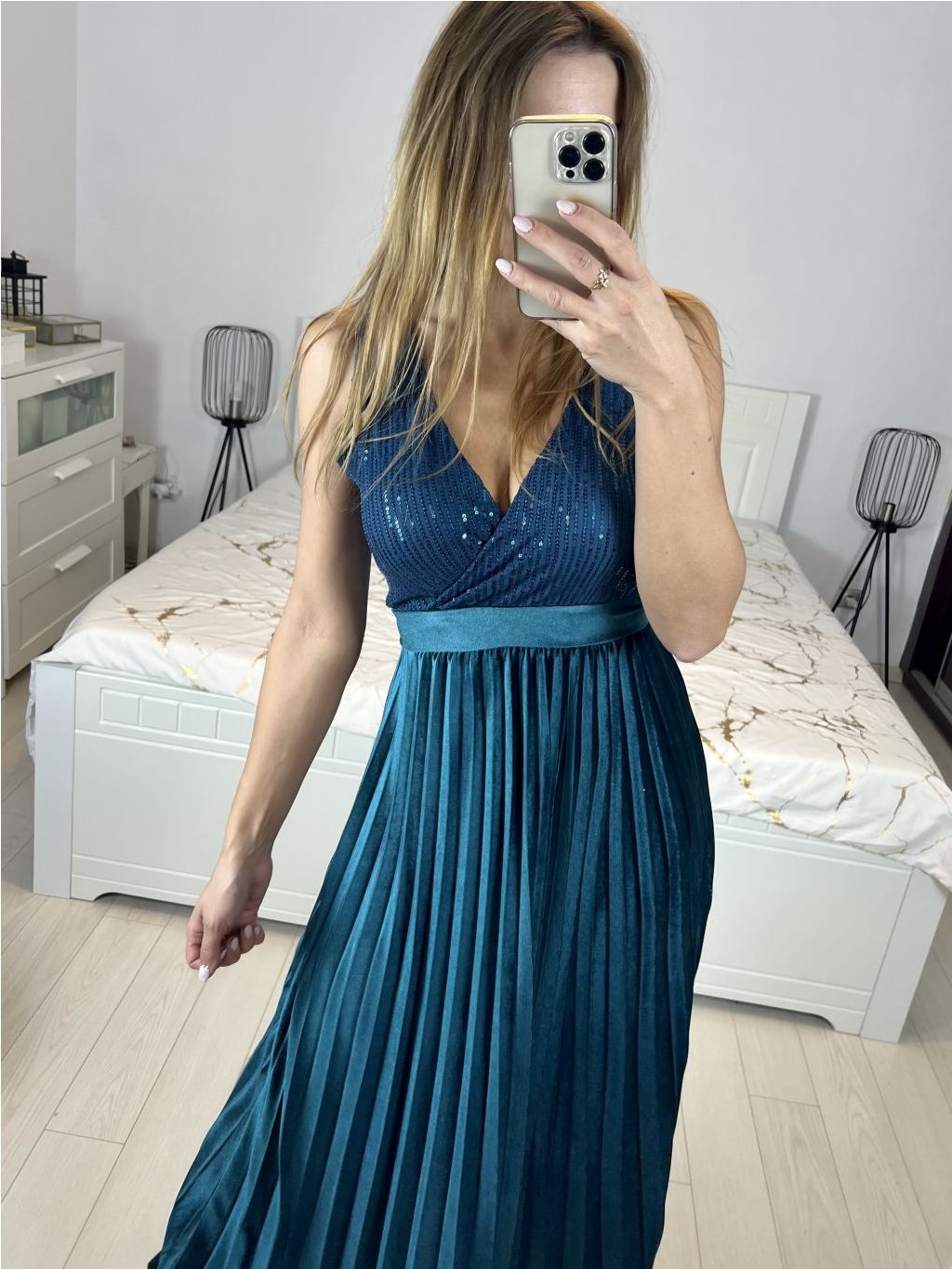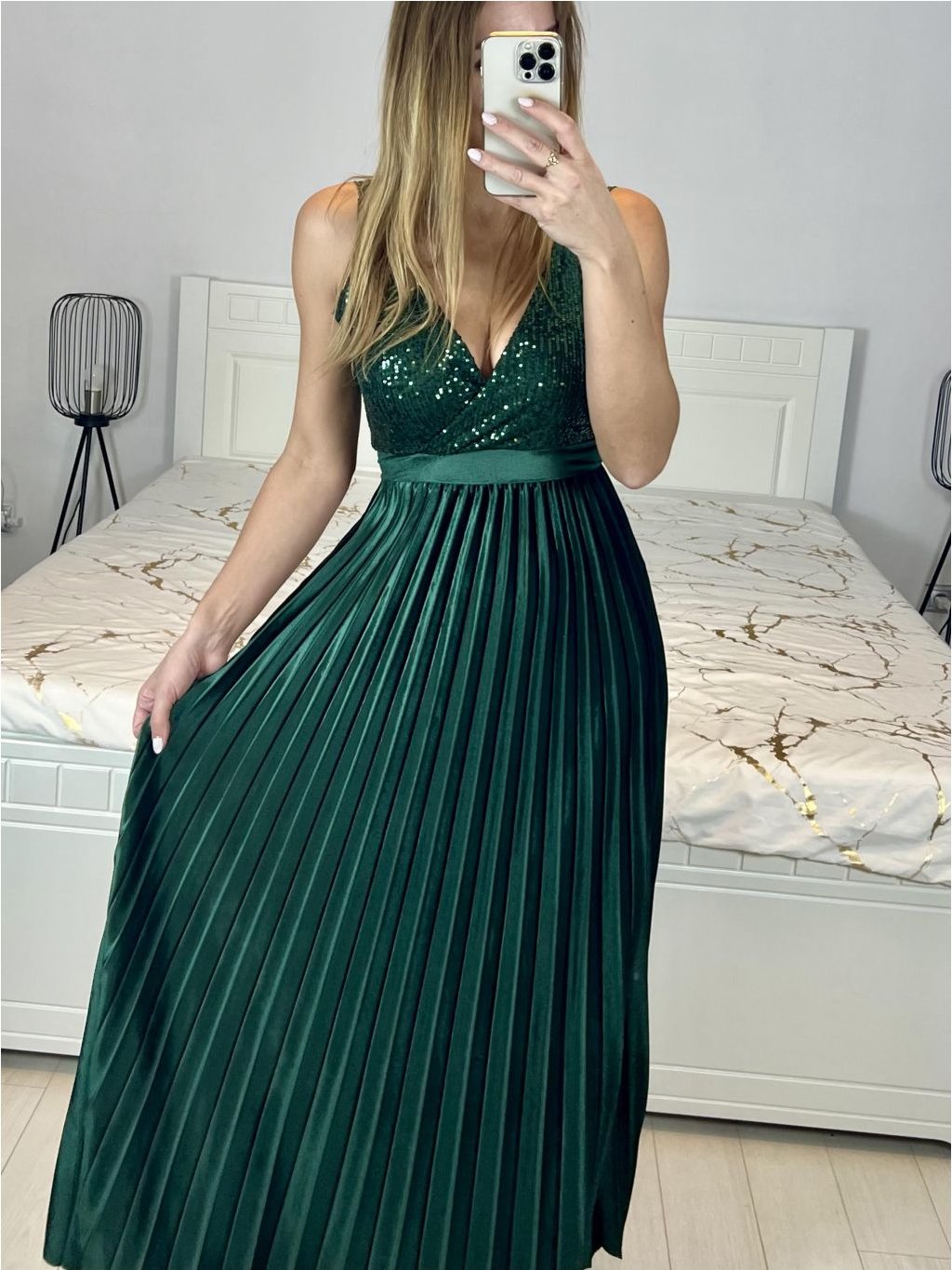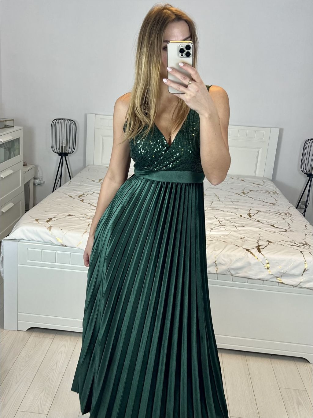 Dlouhé společenské šaty s flitrovým vrškem a sametovou skládanou sukní. Šaty mají prsní vycpávky.