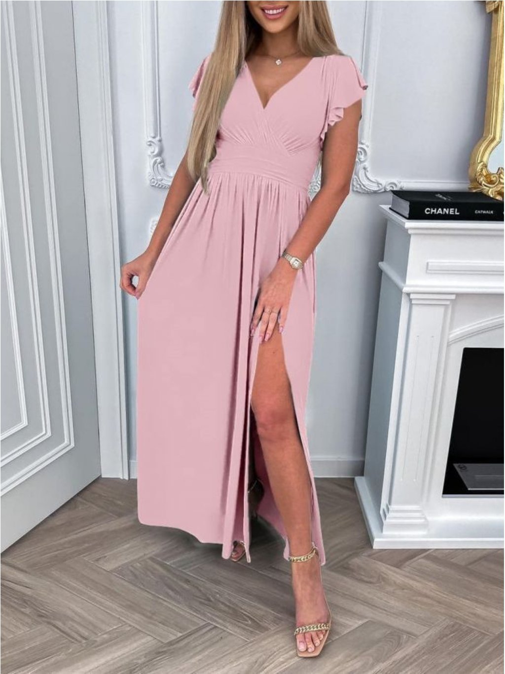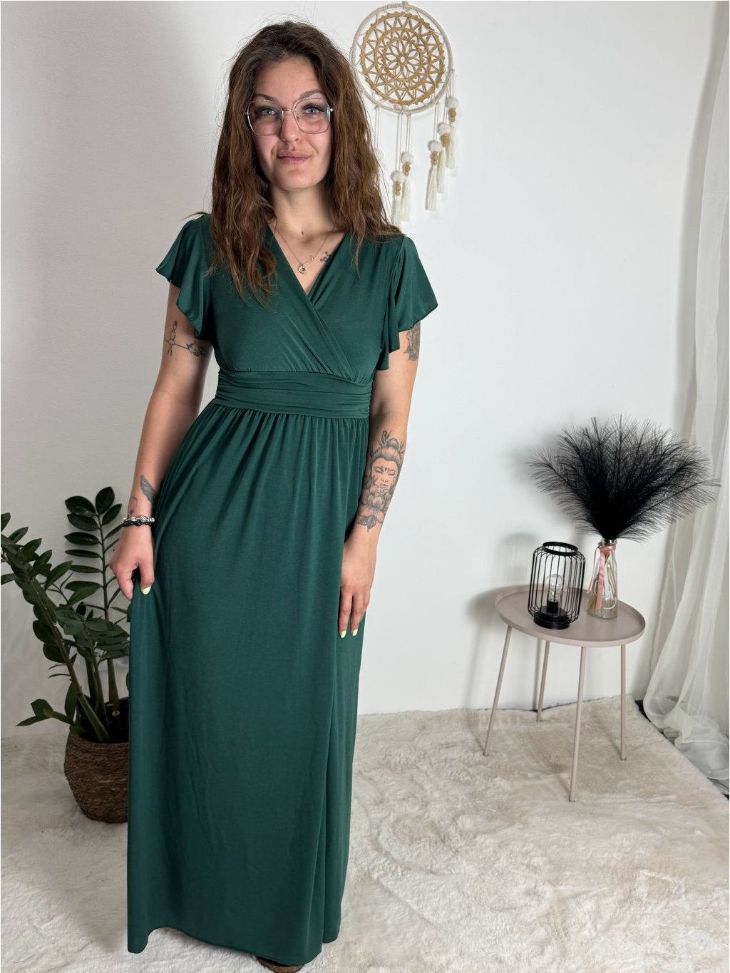 Šaty dlouhé společenské krátký rukáv dámské (S/M ONE SIZE) ITALSKÁ MÓDA IMD23299/DUR