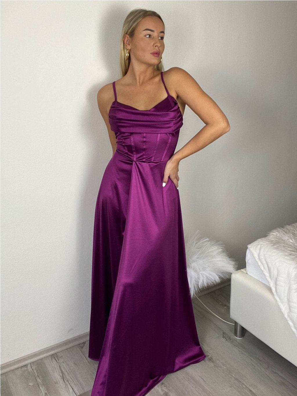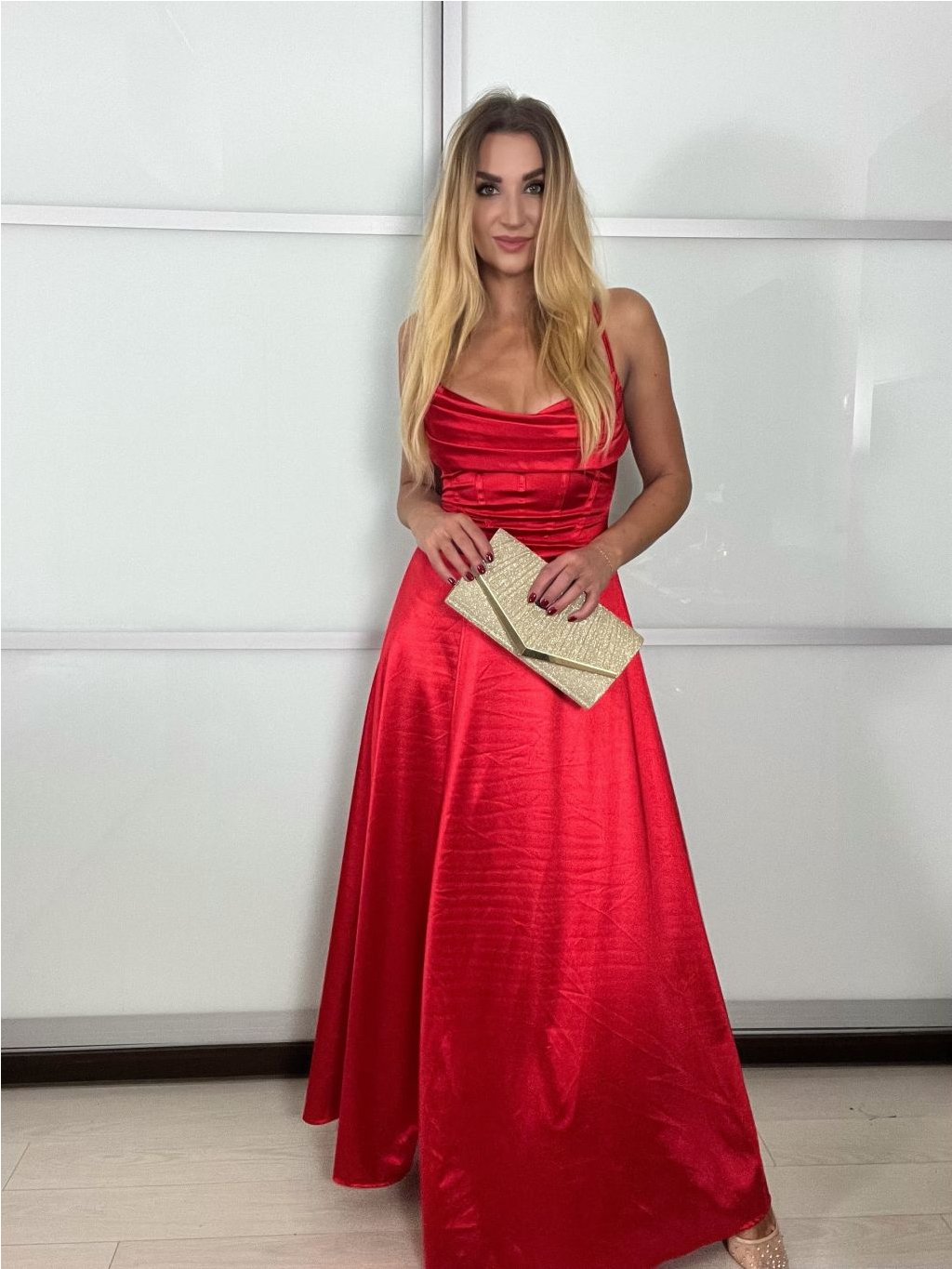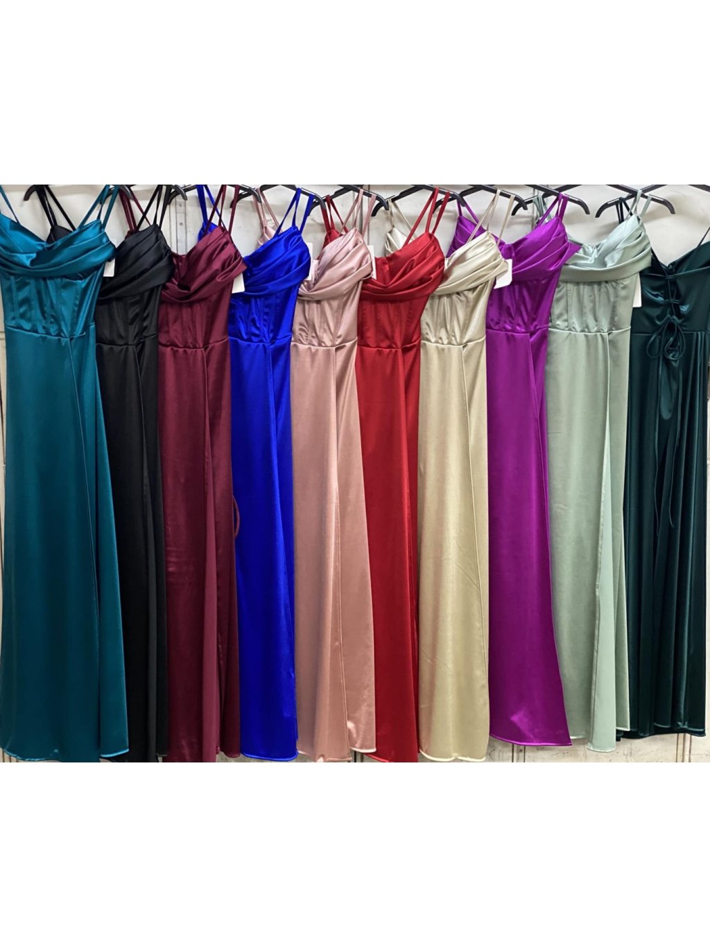 Šaty dlouhé společenské saténové na ramínka dámské ADRIANA (XS/S/M ONE SIZE) ITALSKÁ MÓDA IMC25119