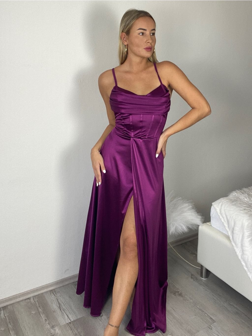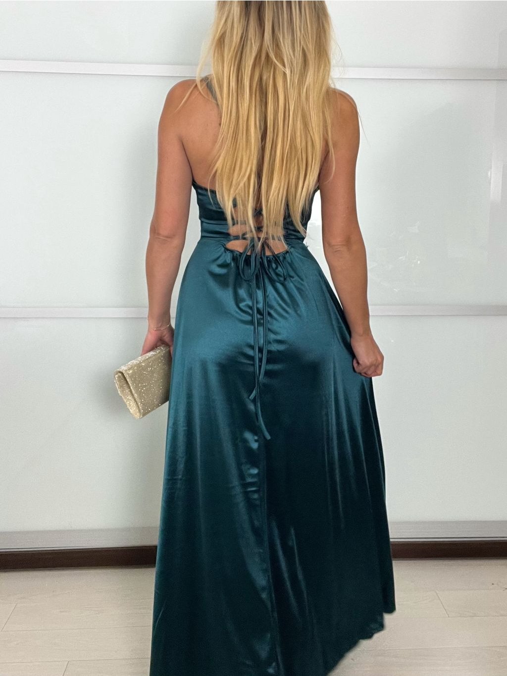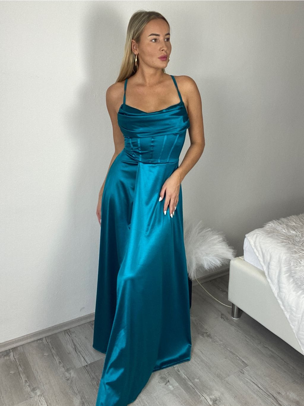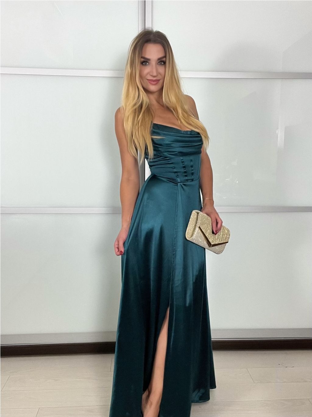 Šaty dlouhé společenské saténové na ramínka dámské ADRIANA (XS/S/M ONE SIZE) ITALSKÁ MÓDA IMC25119
