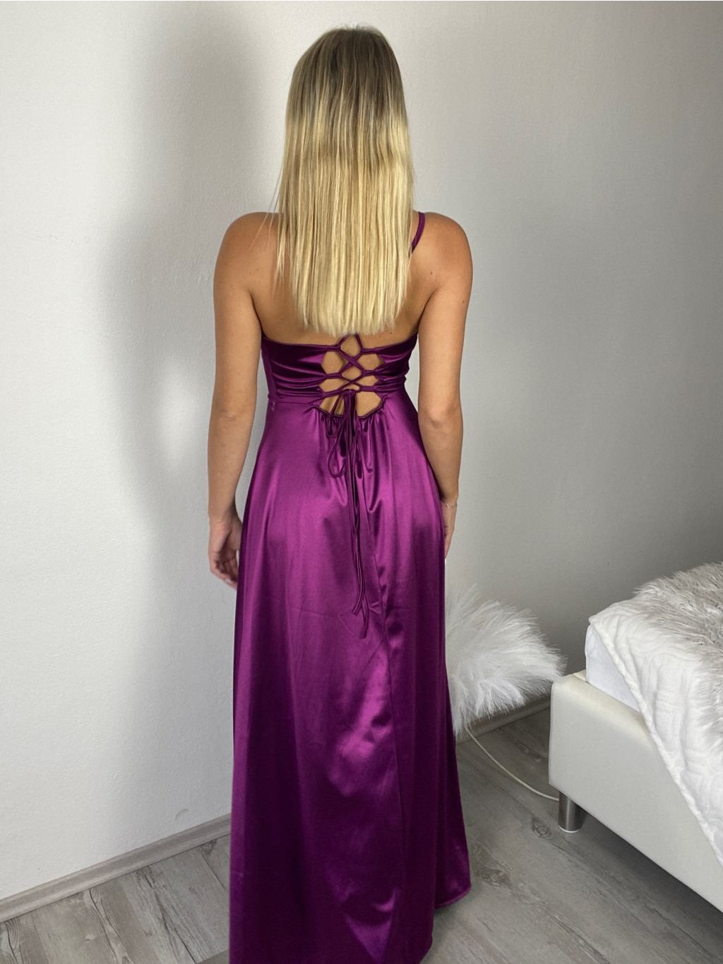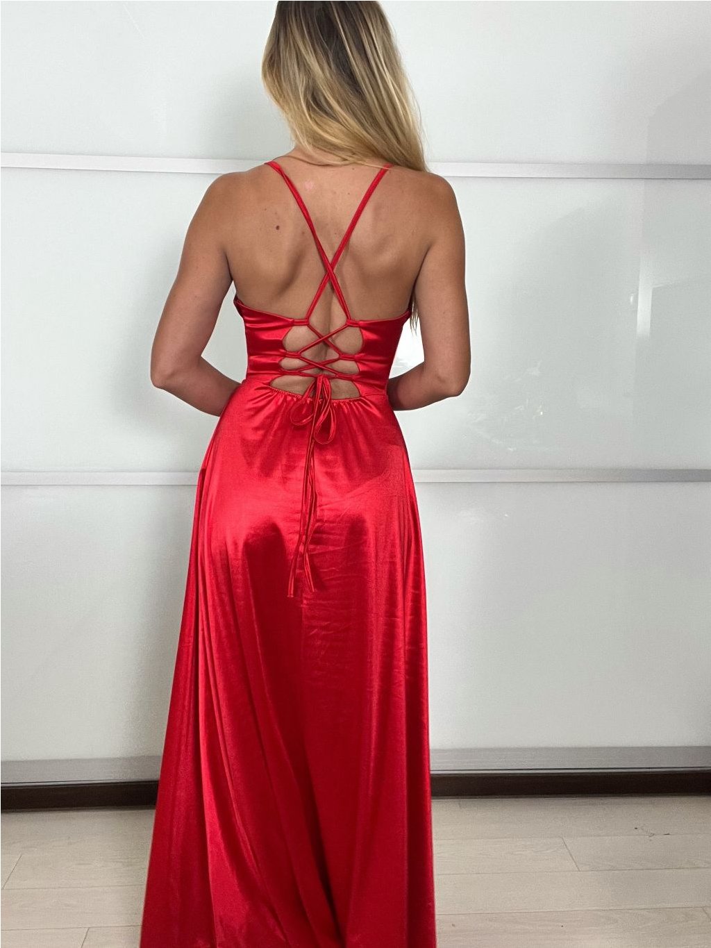 Dlouhé společenské šaty na ramínka, na zádech se šněrováním