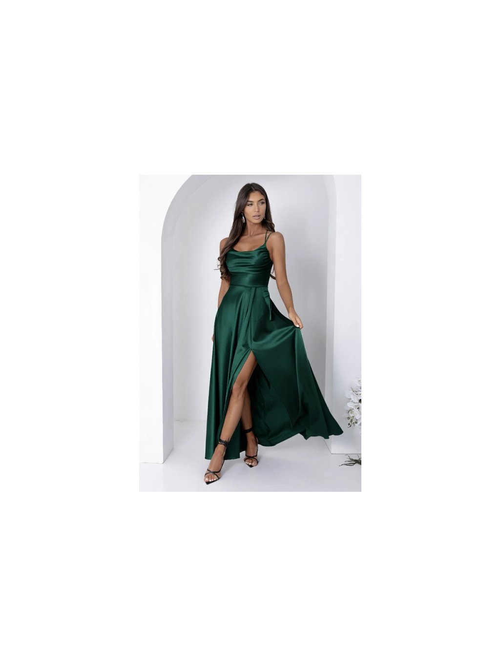 Šaty dlouhé společenské saténové na ramínka dámské VALERIA (32 - 40) POLSKÁ MÓDA PMLAM25001173-3