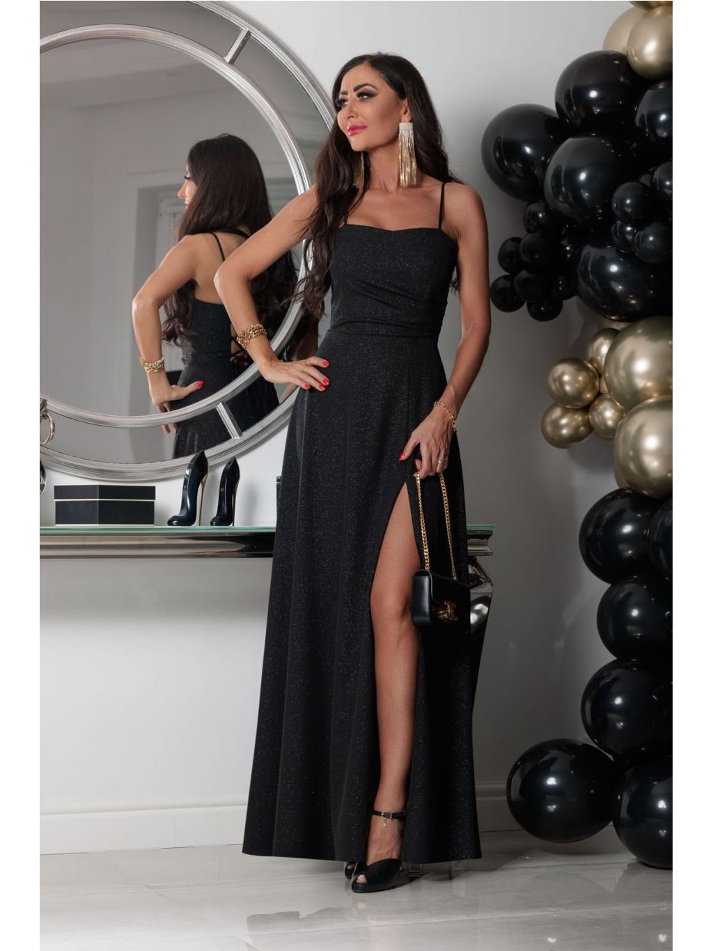 Šaty dlouhé společenské třpytivé na ramínka dámské (34-42) POLSKÁ MÓDA PMLEL24NATHALIEB3