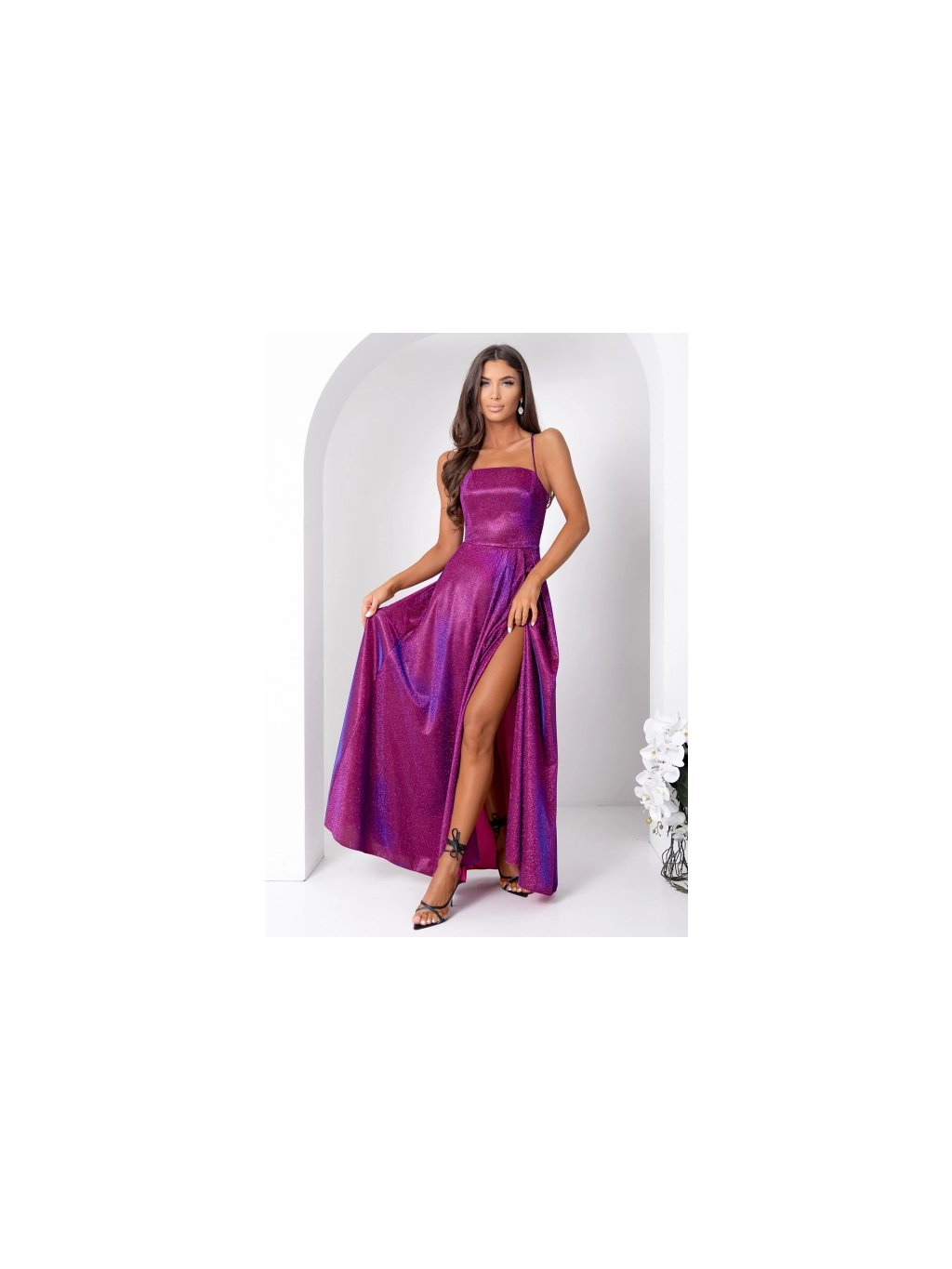 Šaty dlouhé společenské třpytivé na ramínka dámské AURELIA (32-38) POLSKÁ MÓDA PMLAM25011275-2