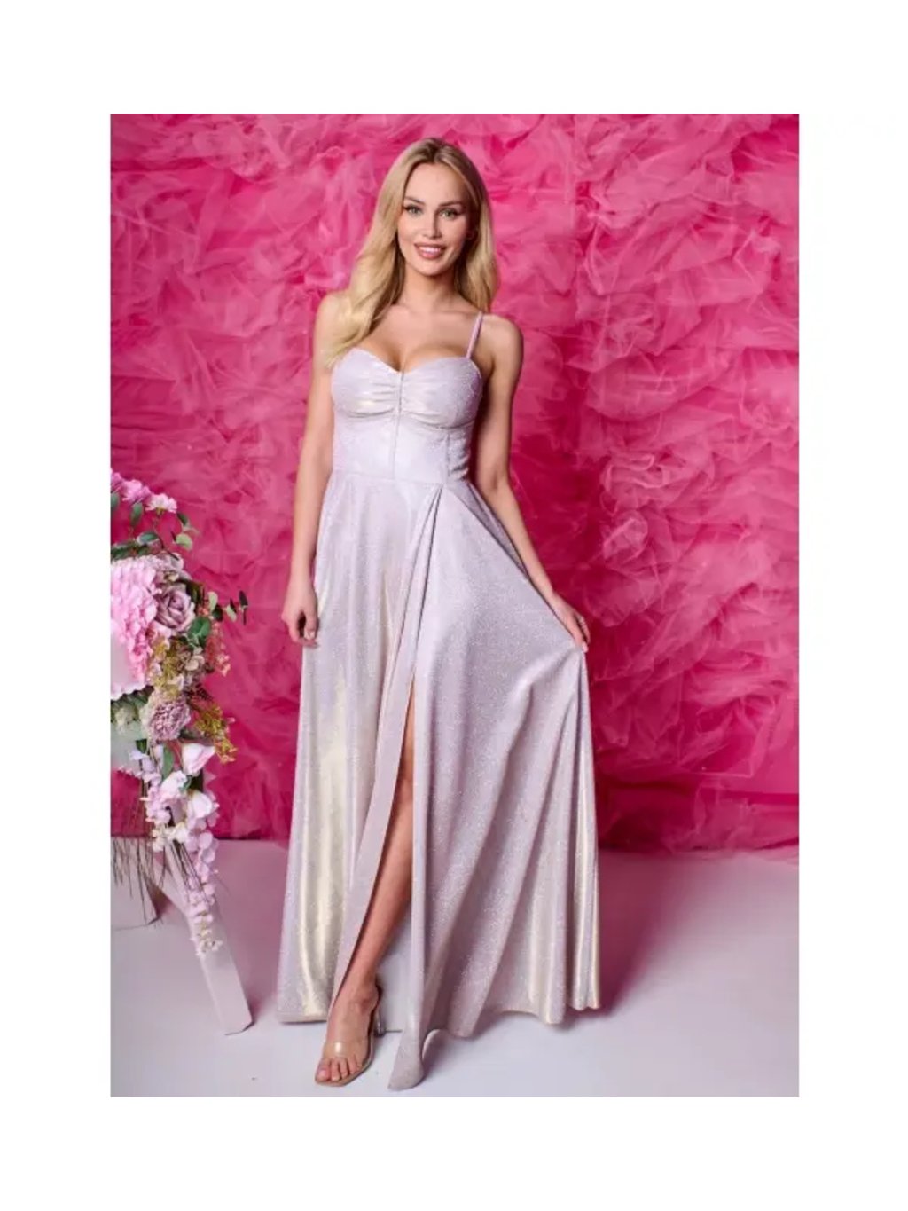 Šaty dlouhé společenské třpytivé na ramínka dámské GORSET (34-38) POLSKÁ MÓDA PMLAM25001113-6