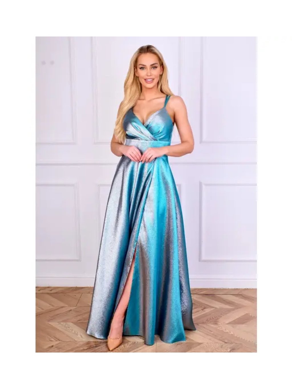 Šaty dlouhé společenské třpytivé na ramínka dámské JACQUARD (34-38) POLSKÁ MÓDA PMLAM2511411-1