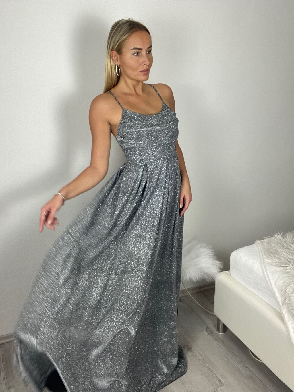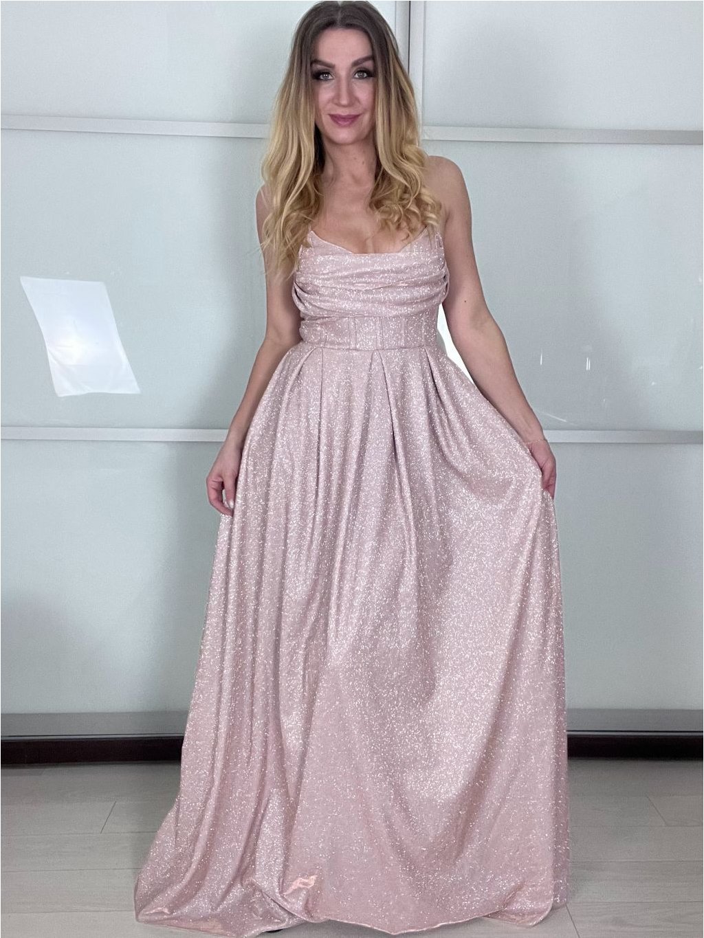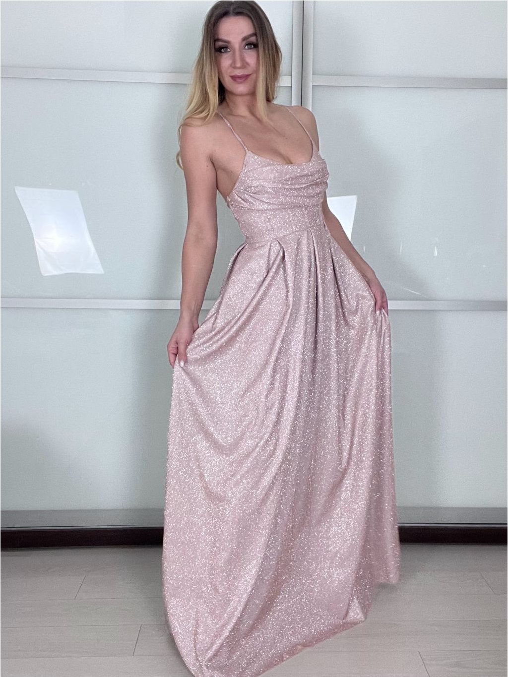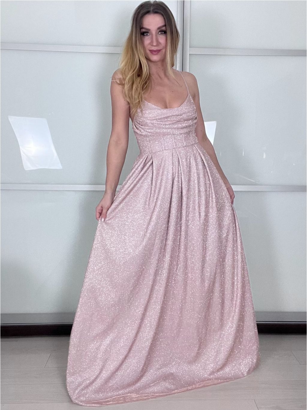 Dlouhé, společenské, třpytivé šaty na ramínka