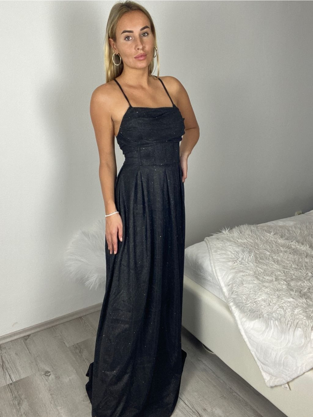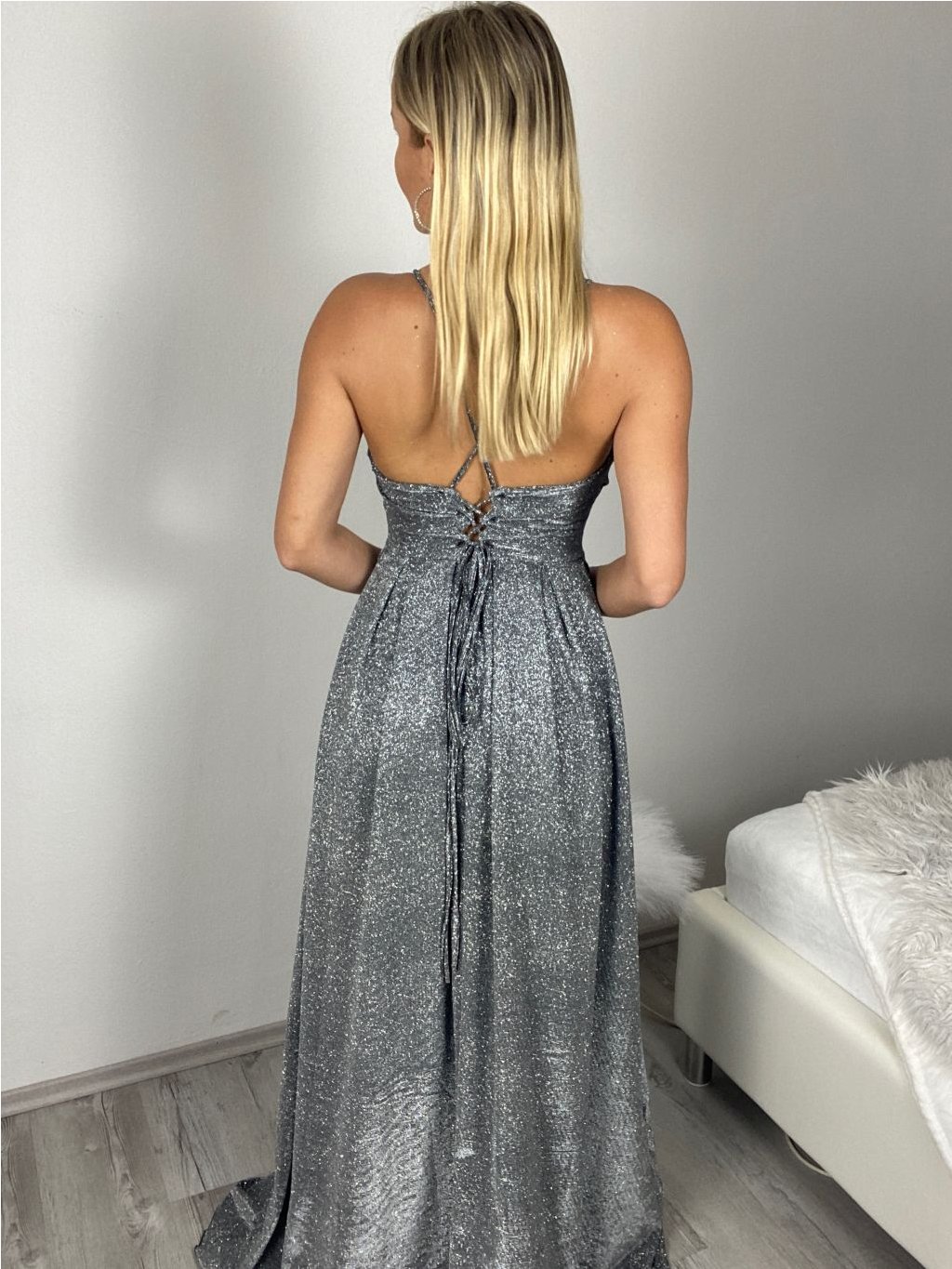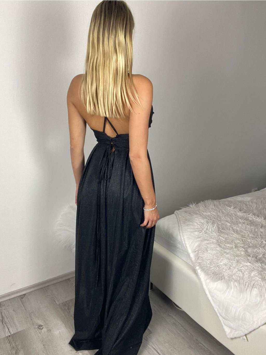 Šaty dlouhé společenské třpytivé na ramínka dámské MENDY (XS/S/M ONE SIZE) ITALSKÁ MÓDA IMM25M34726
