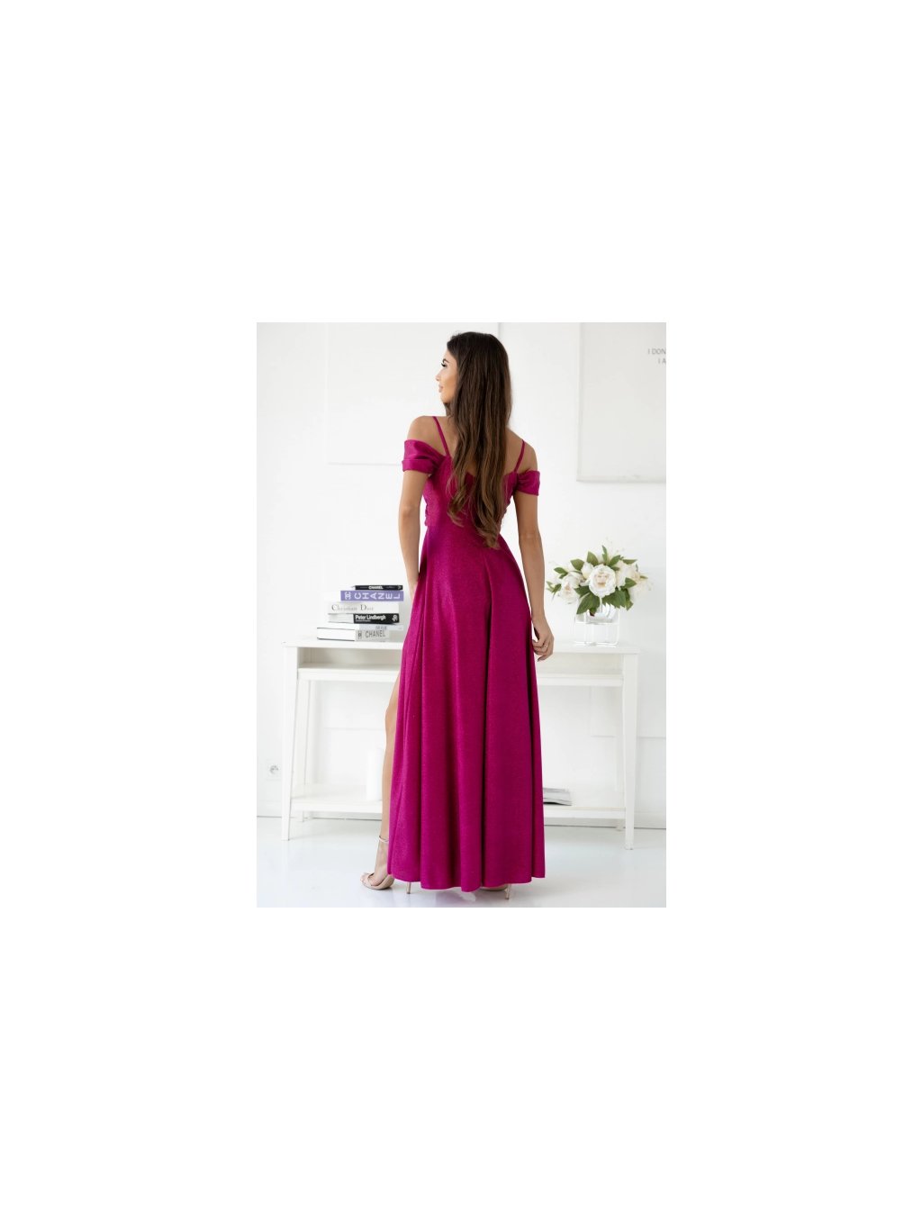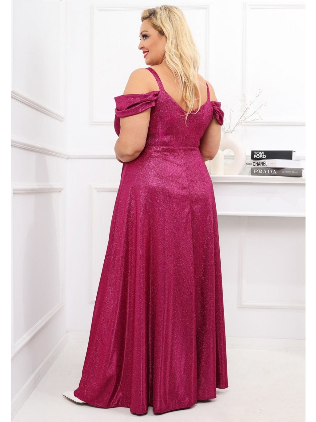 Šaty dlouhé společenské třpytivé na ramínka dámské nadrozměr VALENTINE (42-48) POLSKÁ MÓDA PMLAM25001117-8