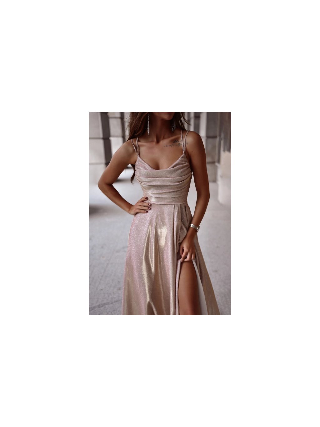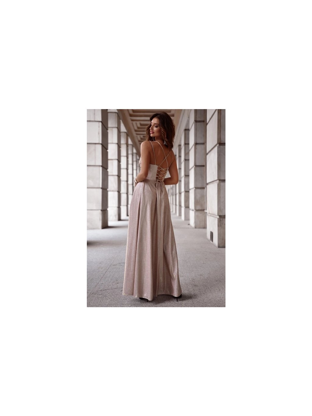 Šaty dlouhé společenské třpytivé na ramínka dámské VALERIA (32-36) POLSKÁ MÓDA PMLAM25001171-2