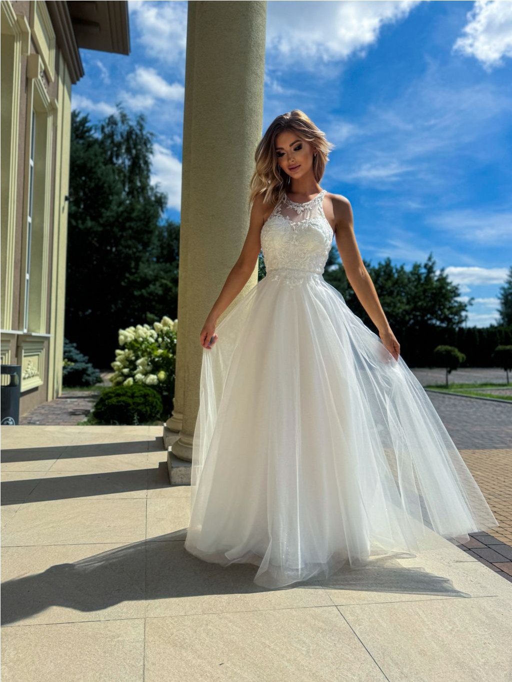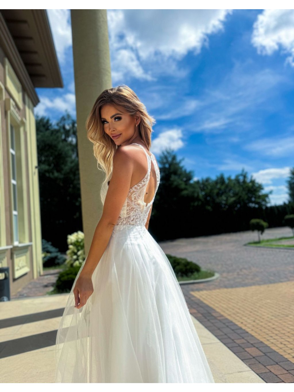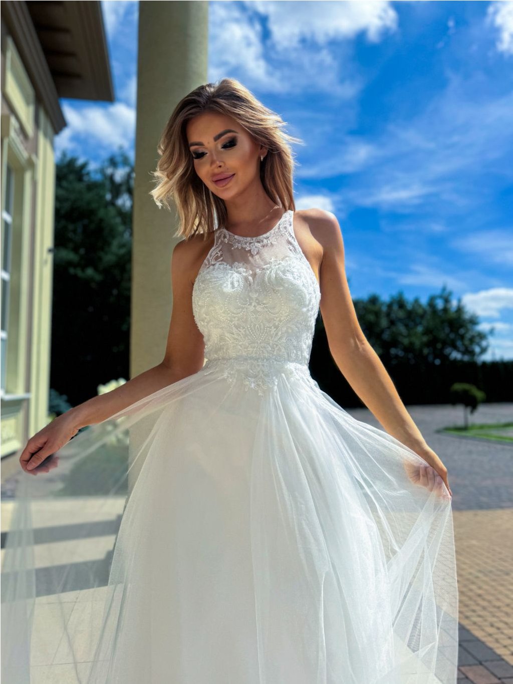 Šaty dlouhé svatební krajkové bez rukávu dámské nadrozměr HELENA (34-44) POLSKÁ MÓDA PMLPT26021