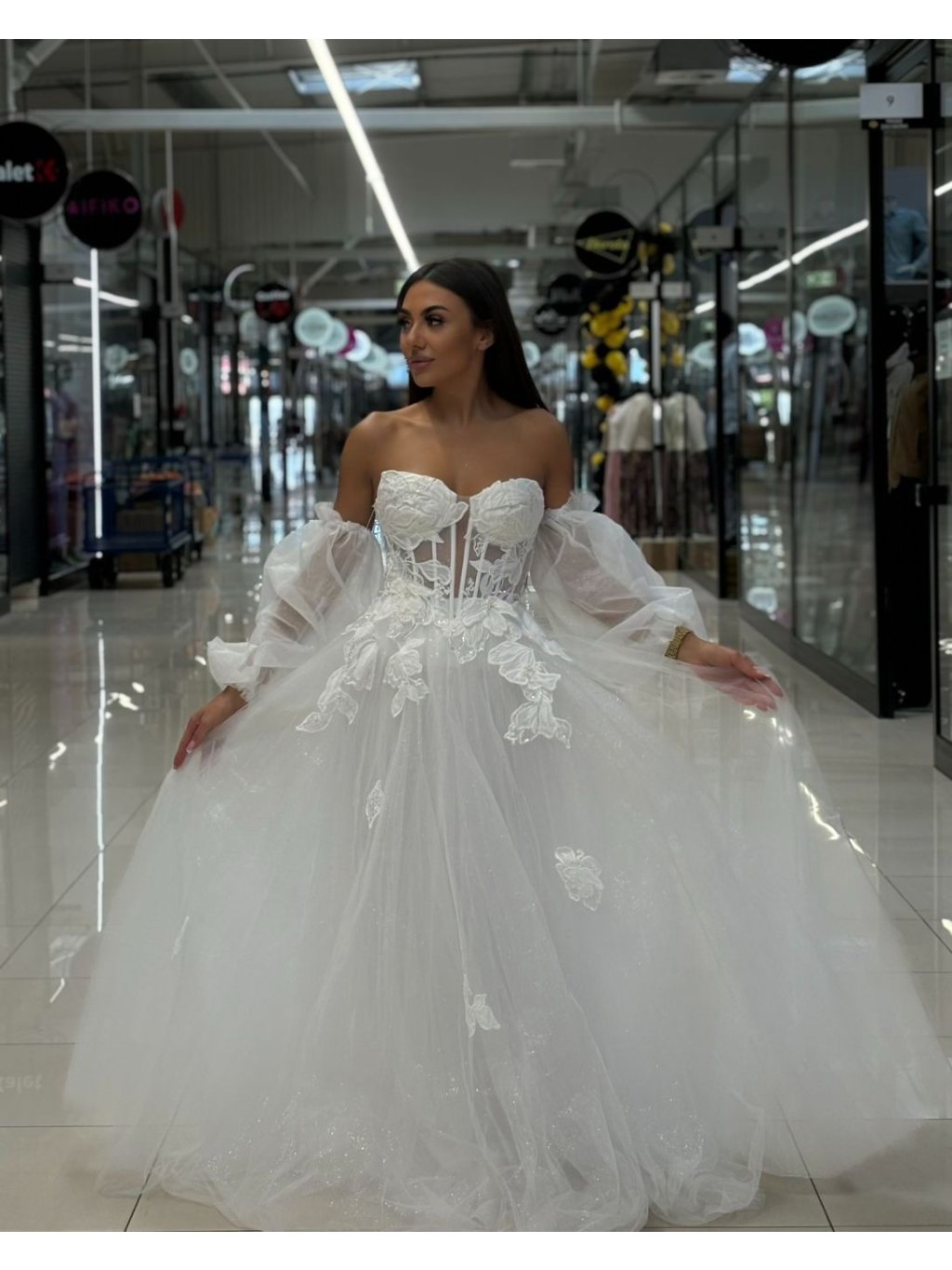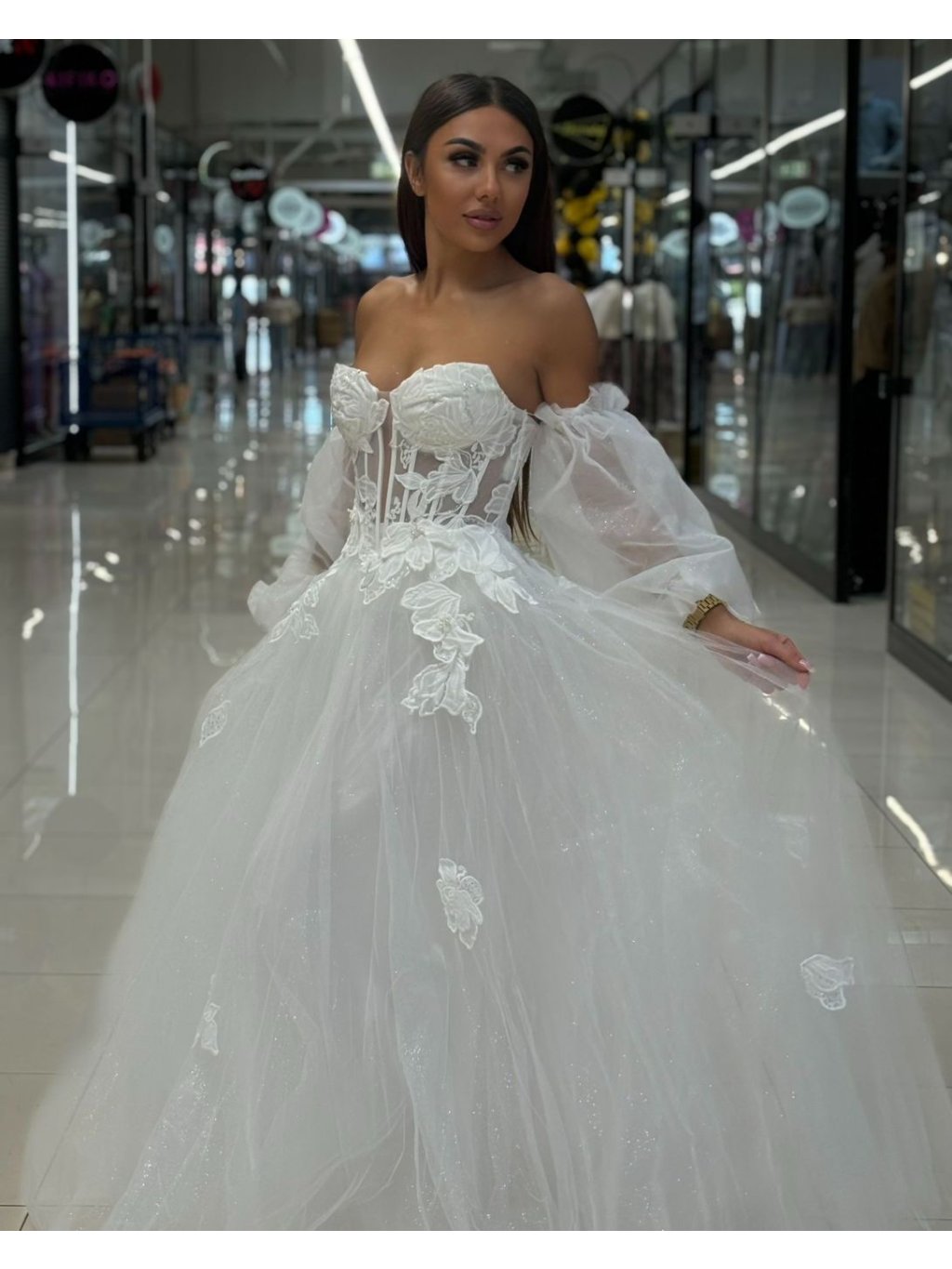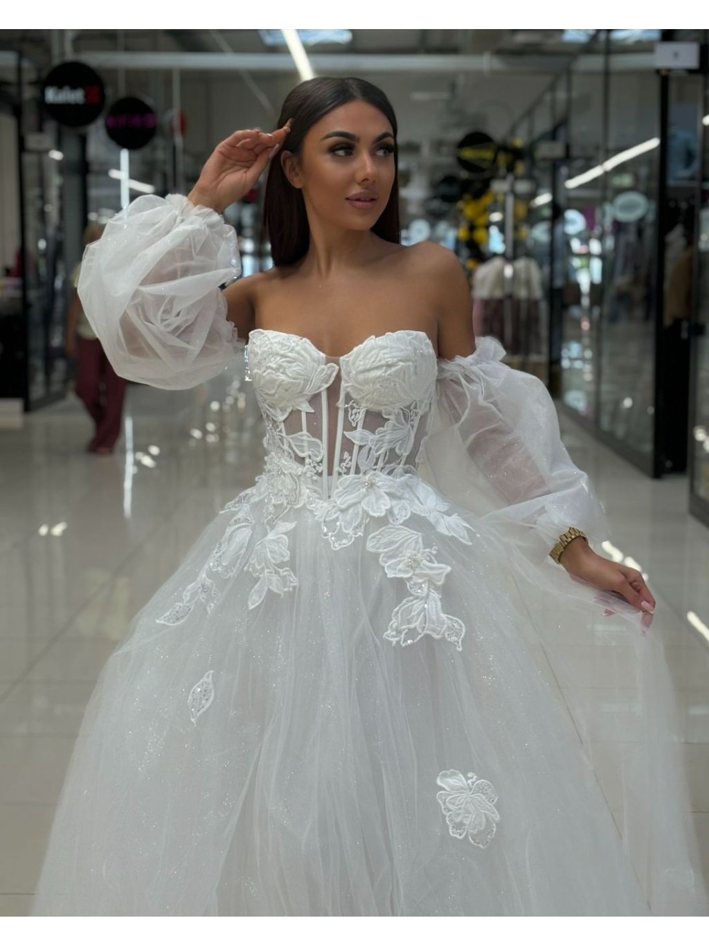 Šaty dlouhé svatební krajkové dlouhý rukáv dámské COFETE (34-40) POLSKÁ MÓDA PMLPT26010