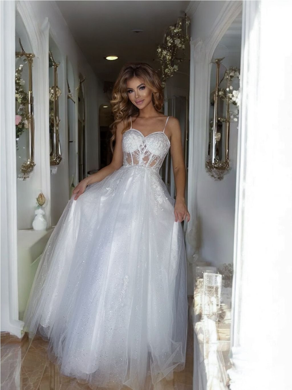 Šaty dlouhé svatební krajkové na ramínka dámské SEYCHELLES (34-40) POLSKÁ MÓDA PMLPT26017