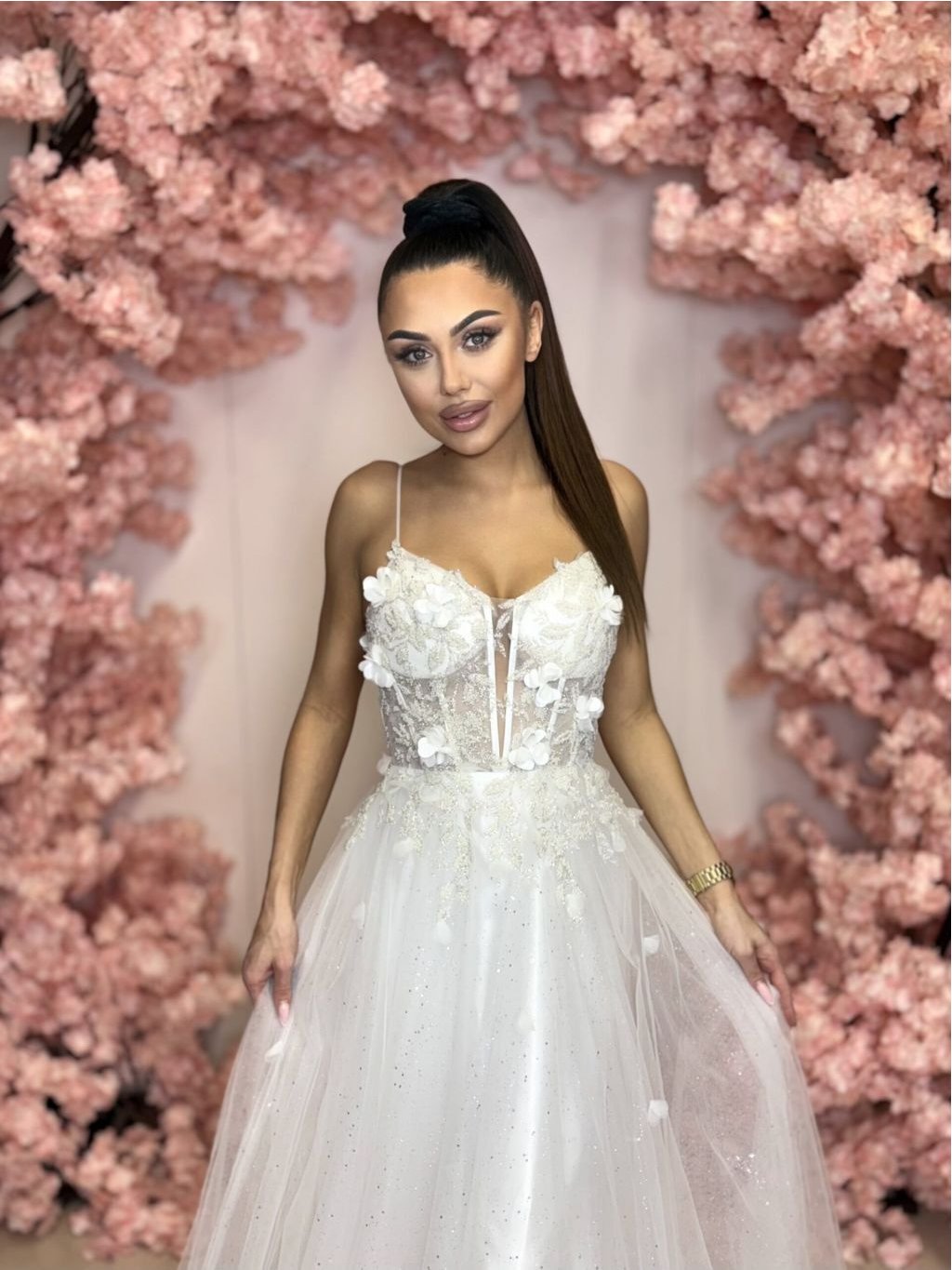Šaty dlouhé svatební na ramínka dámské SOLVI (34-40) POLSKÁ MÓDA PMLPT26008