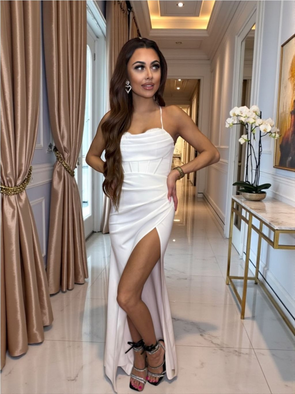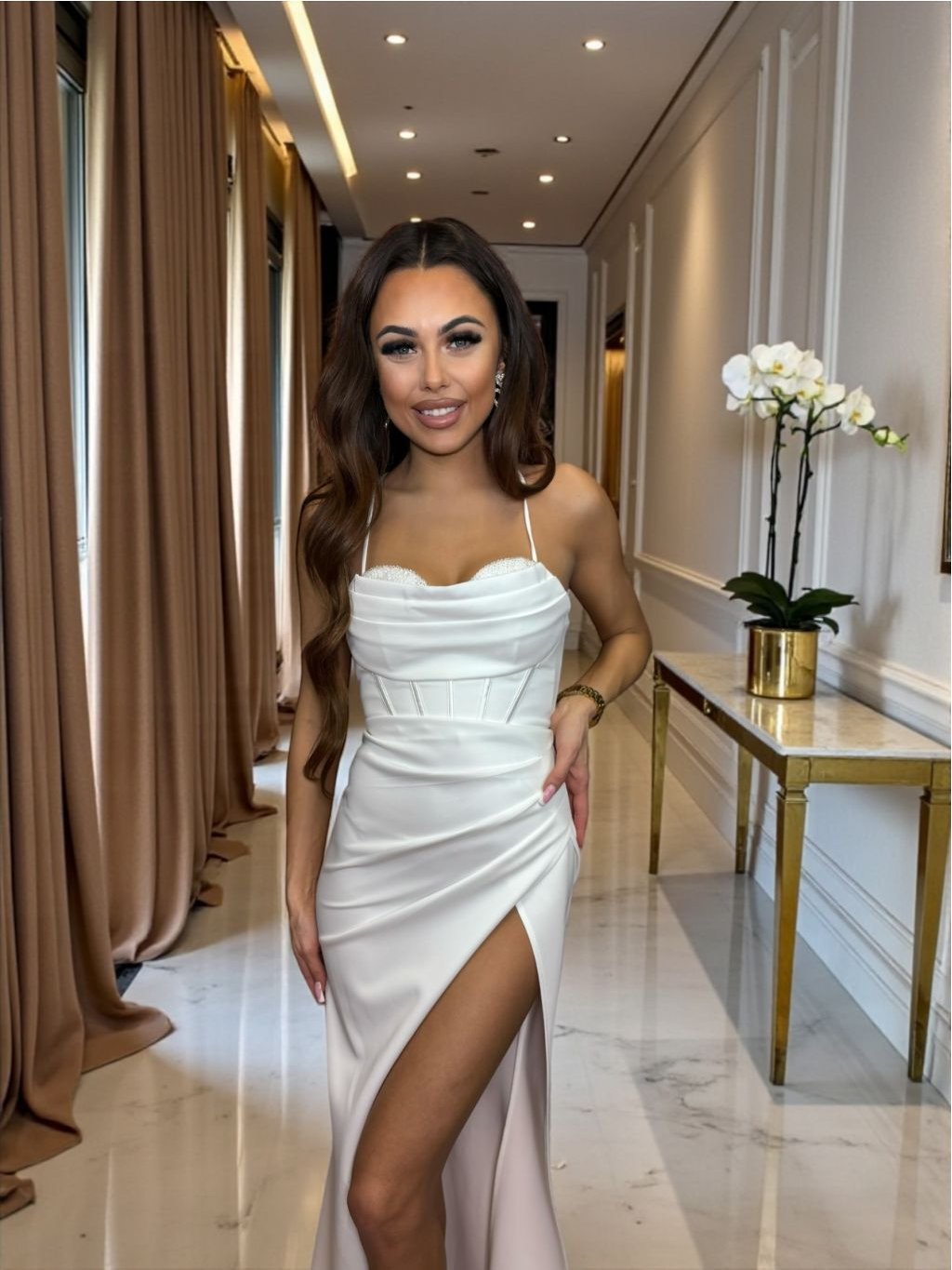 Šaty dlouhé svatební na ramínka dámské VARVARA (34-40) POLSKÁ MÓDA PMLPT26004