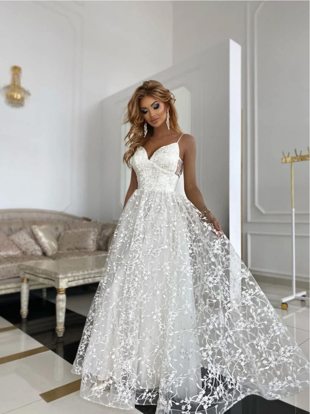 Šaty dlouhé svatební na ramínka dámské VESPA (34-40) POLSKÁ MÓDA PMLPT26011