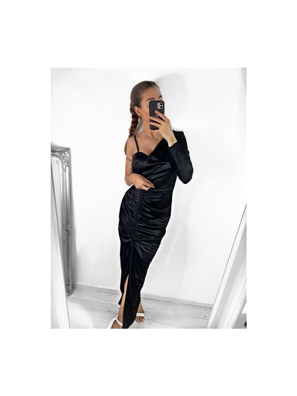 Elegantní, společenské šaty s dlouhým rukávem a na ramínka