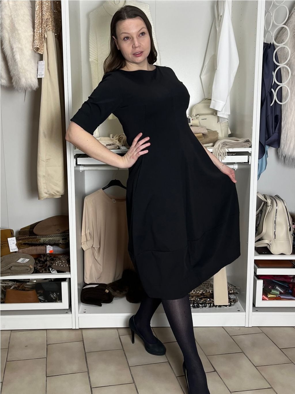 L: přes prsa 94cm, pas 86cm, délka 111cm;
