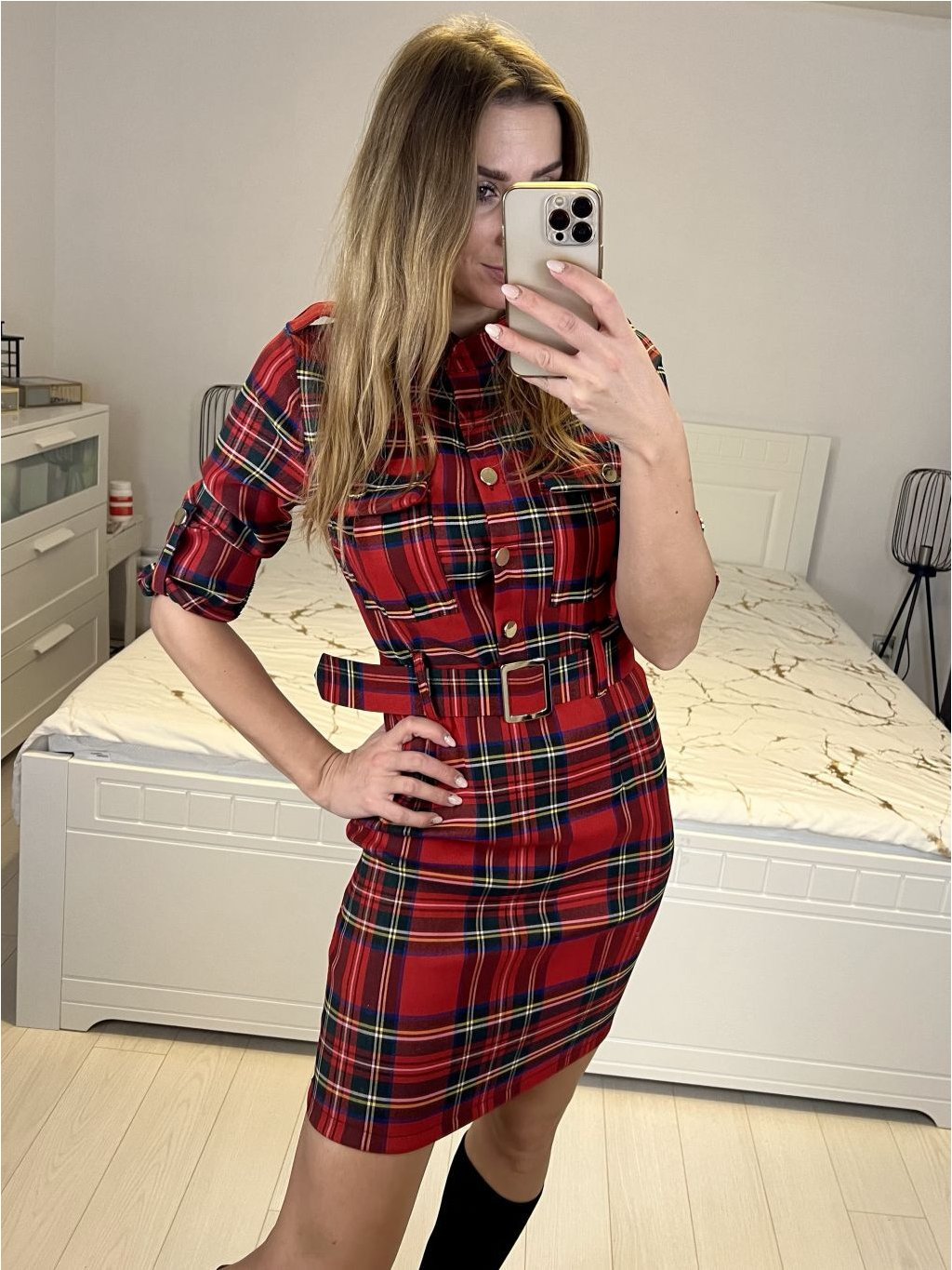 Šaty elegantní košilové vánoční dlouhý rukáv dámské (S/M ONE SIZE) ITALSKÁ MÓDA IMM23M5390/DU