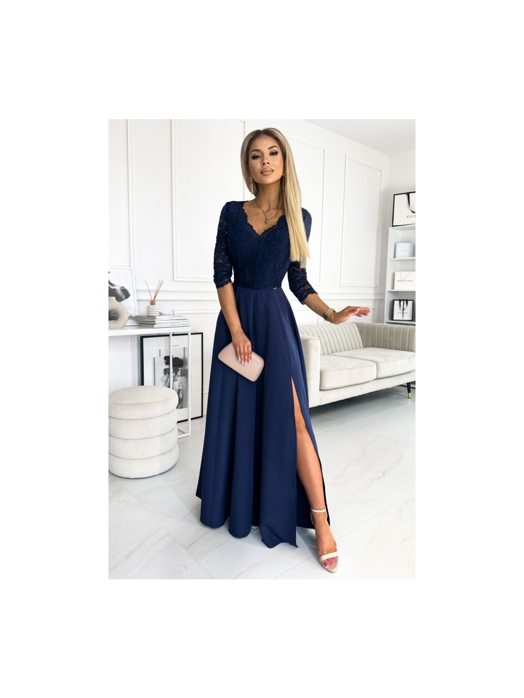 Šaty elegantní krajkové dlouhé 3/4 rukávy (S-2XL) ITALSKÁ MÓDA NMC-309-6/DU