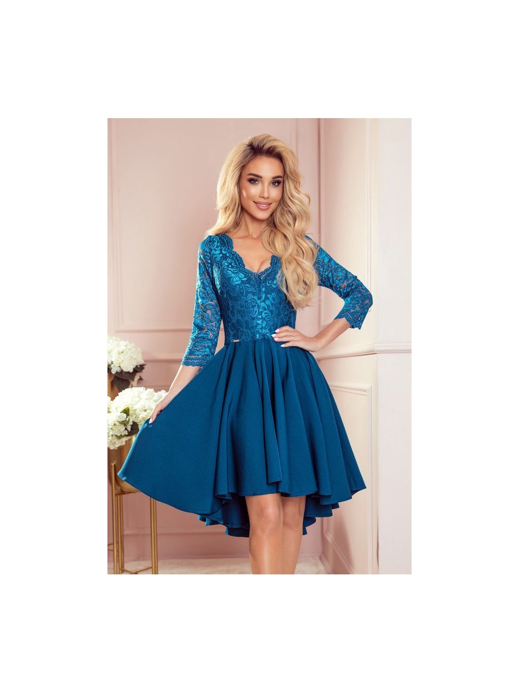 Šaty elegantní krajkové s delším zadním dílem, 3/4 rukávy (S-2XL) ITALSKÁ MÓDA NMC-210-14/DU