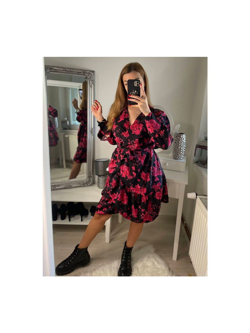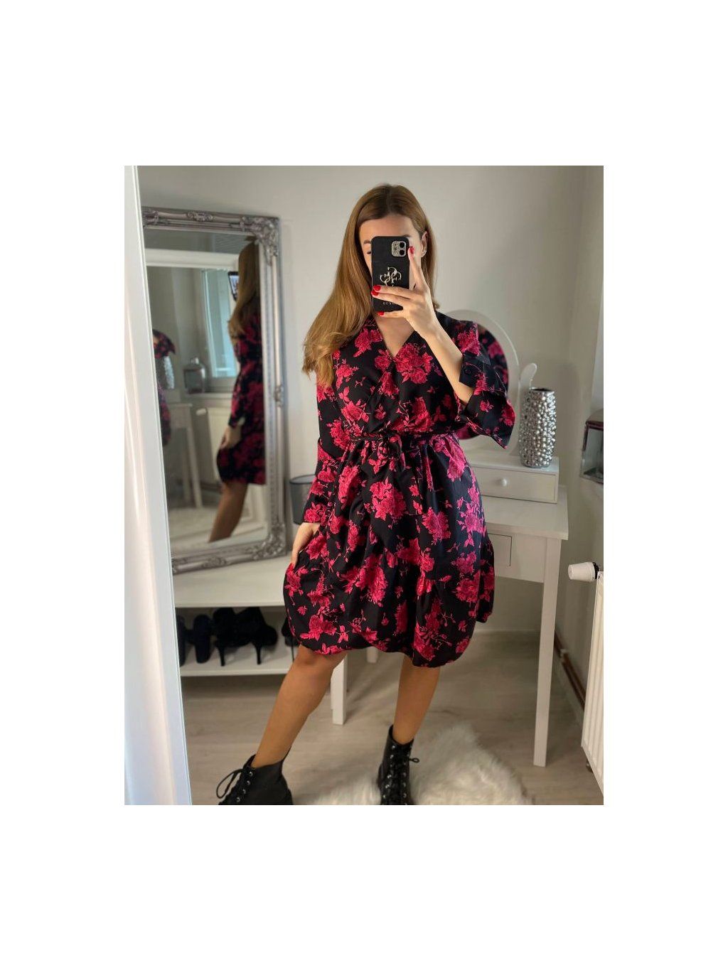 Šaty elegantní šifonové dlouhý rukáv dámské, v pase na gumu, s páskem, na rukávem rozepínání na knoflíky
