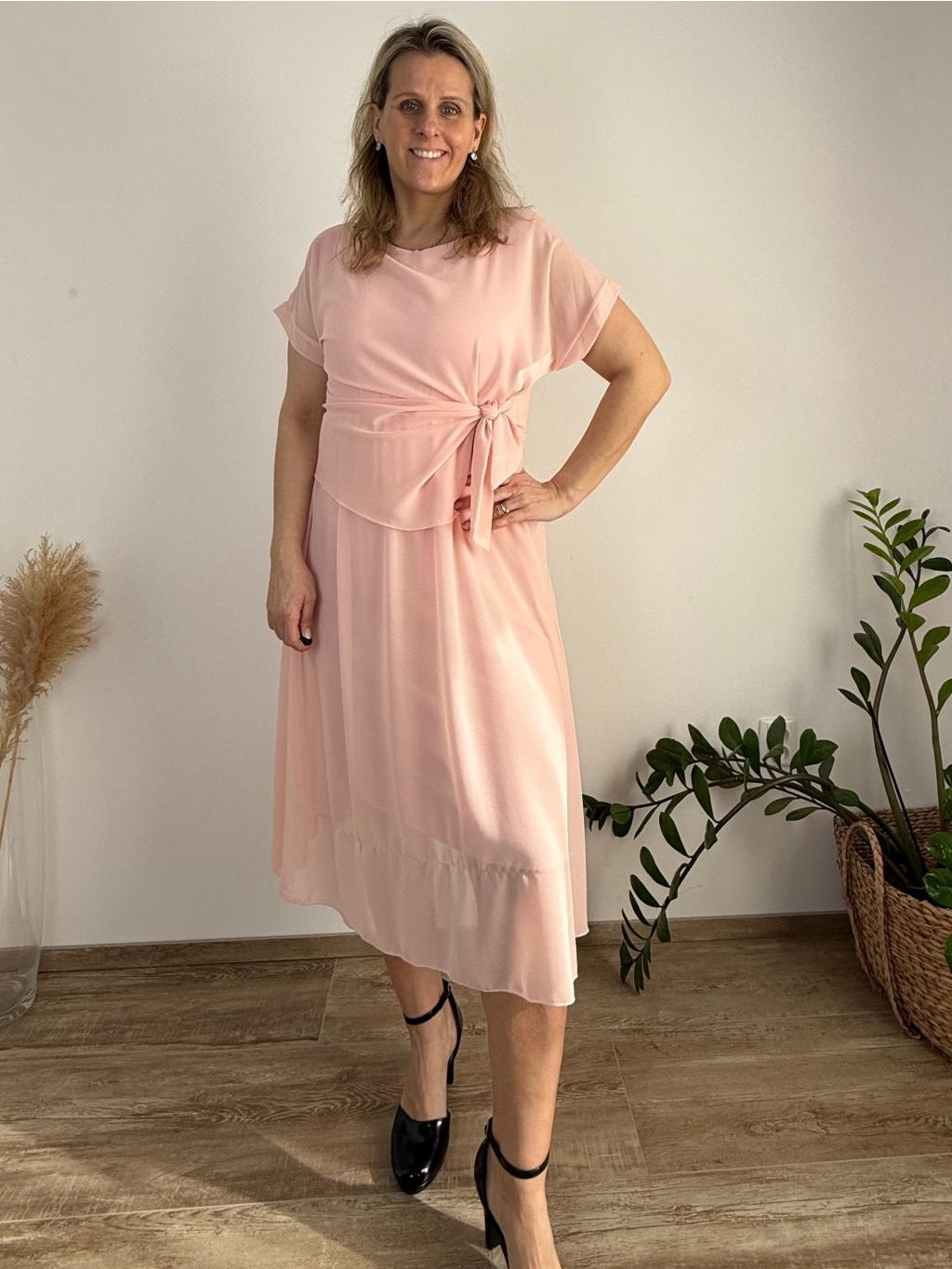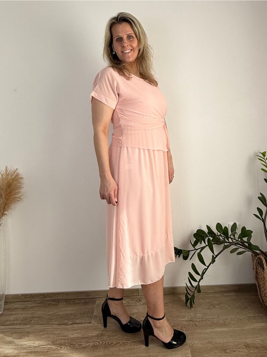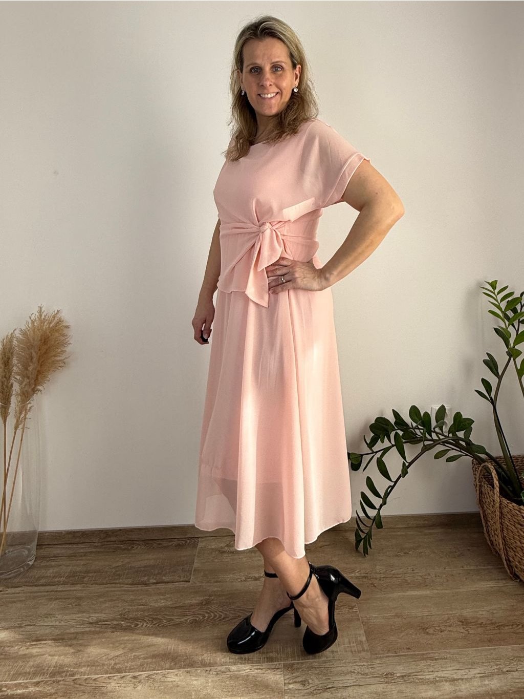 Elegantní šifonové šaty s krátkým rukávem