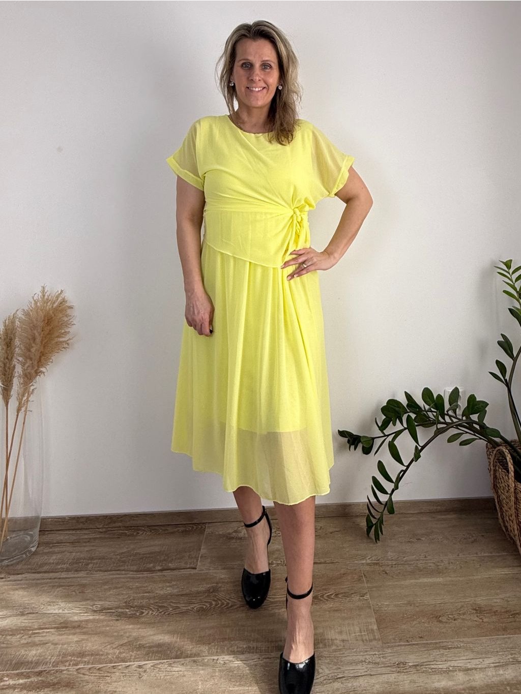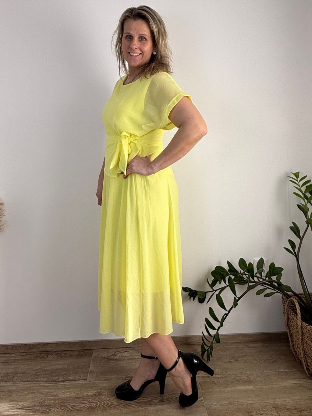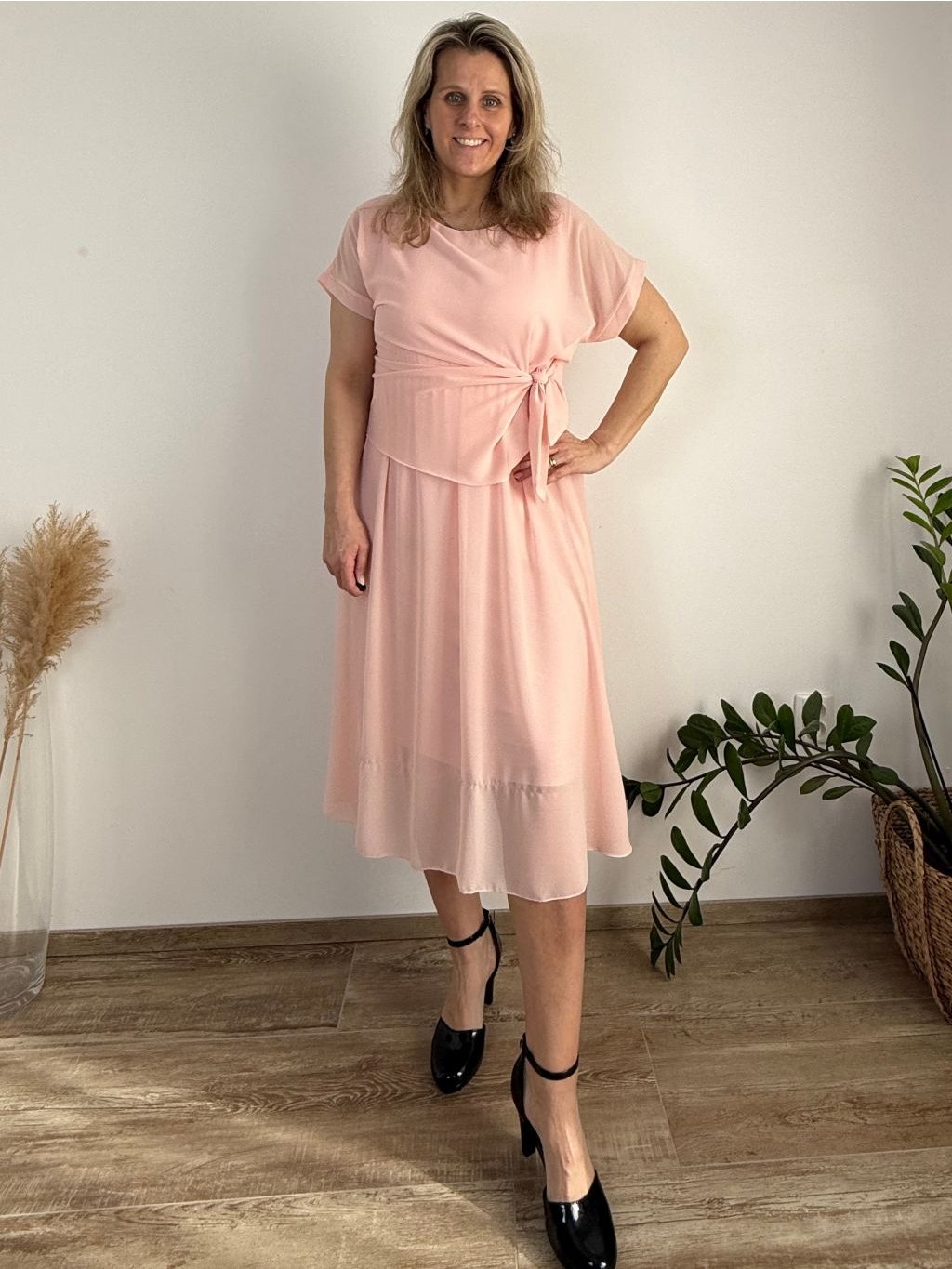 Elegantní šifonové šaty s krátkým rukávem