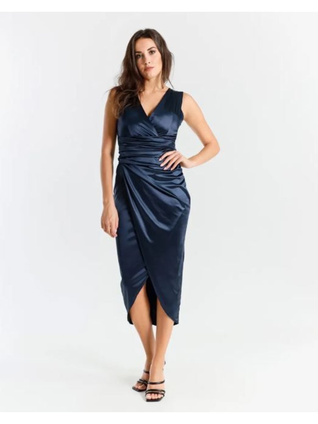 Rozměry: přes prsa 88-90 cm, pas 72 pas cm, boky 90 díky rozparku pruží, délka 130-136cm