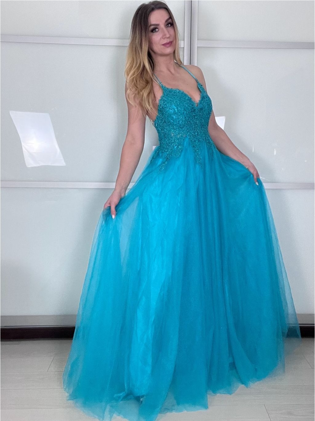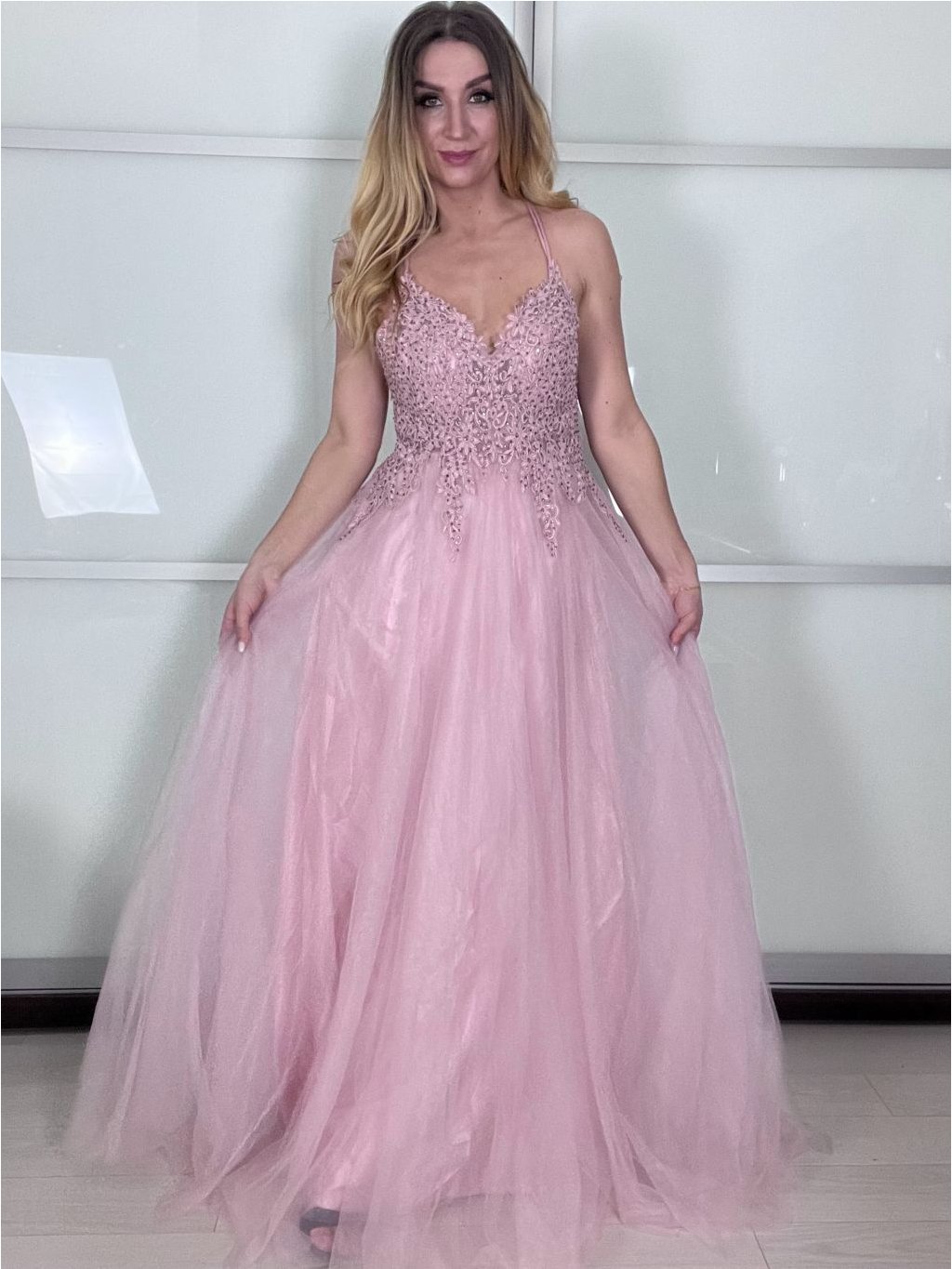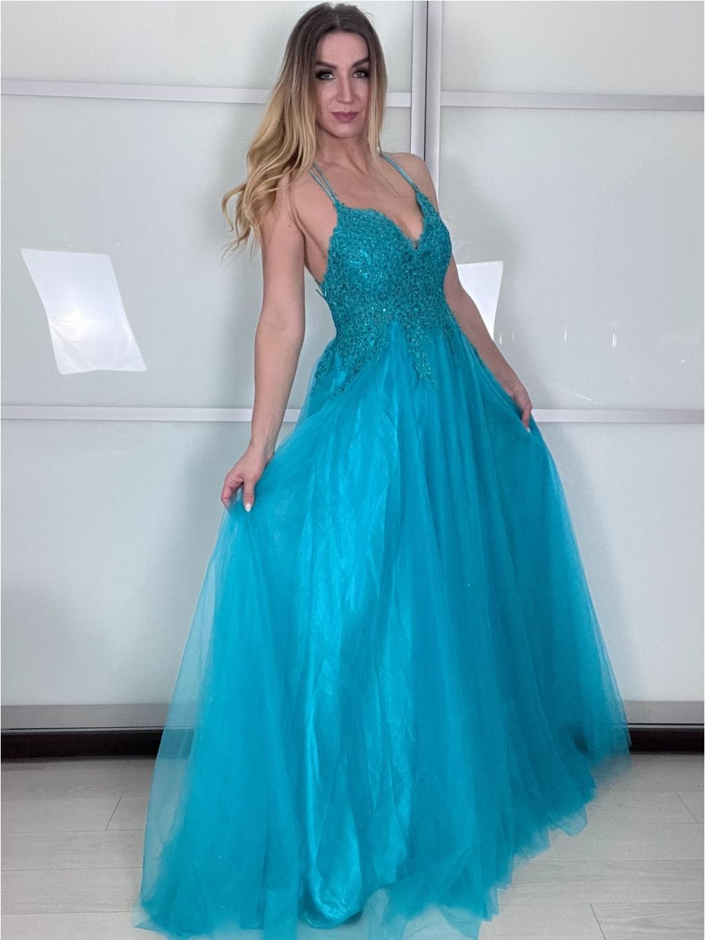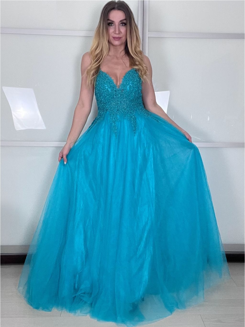 Hledáte šaty, ve kterých se budete cítit jako v moderní pohádce? Tento model kombinuje jemný tyl s precizně vypracovaným krajkovým korzetem. Třpytivé detaily jemně odrážejí světlo při každém vašem pohybu, zatímco bohatá sukně zajistí, že na parketu budete nepřehlédnutelná.