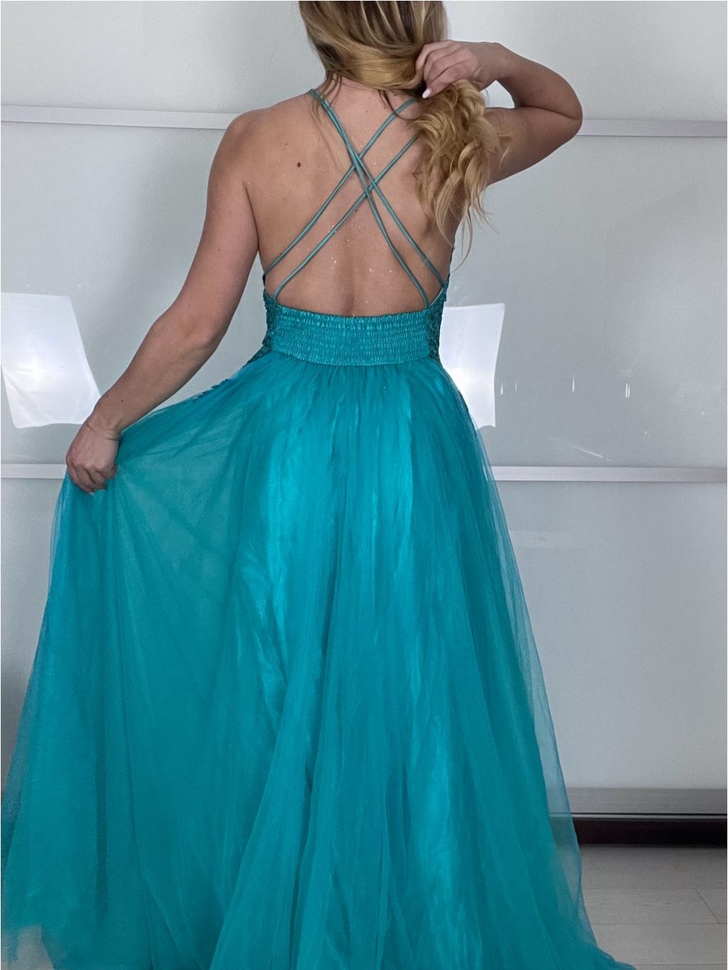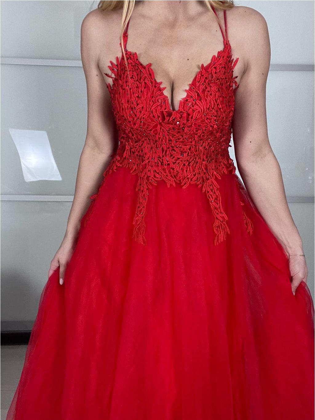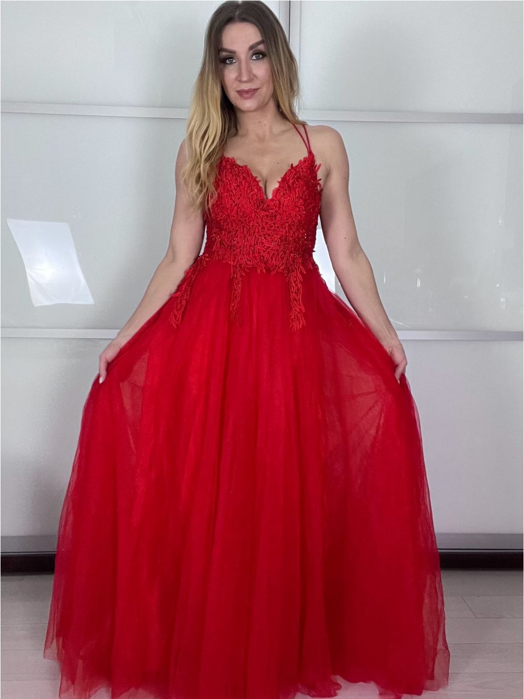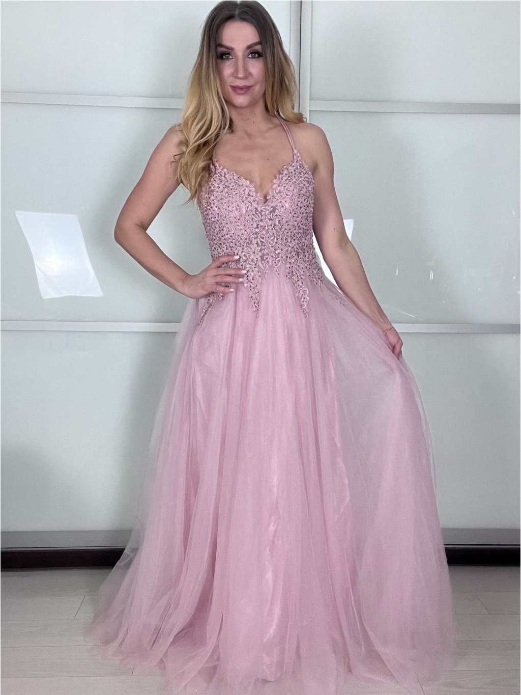 Hledáte šaty, ve kterých se budete cítit jako v moderní pohádce? Tento model kombinuje jemný tyl s precizně vypracovaným krajkovým korzetem. Třpytivé detaily jemně odrážejí světlo při každém vašem pohybu, zatímco bohatá sukně zajistí, že na parketu budete nepřehlédnutelná.
