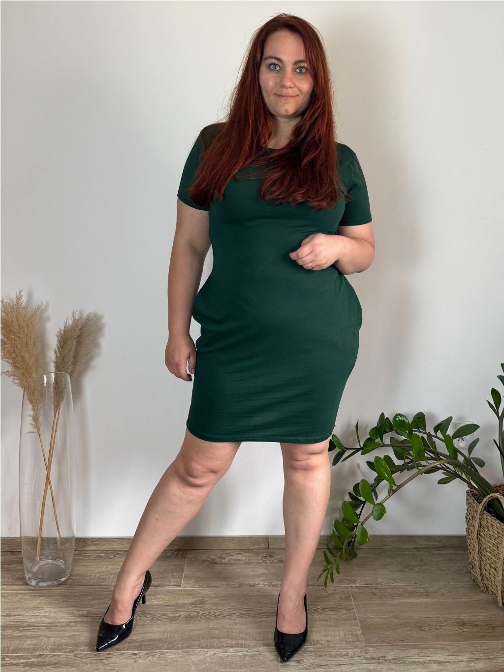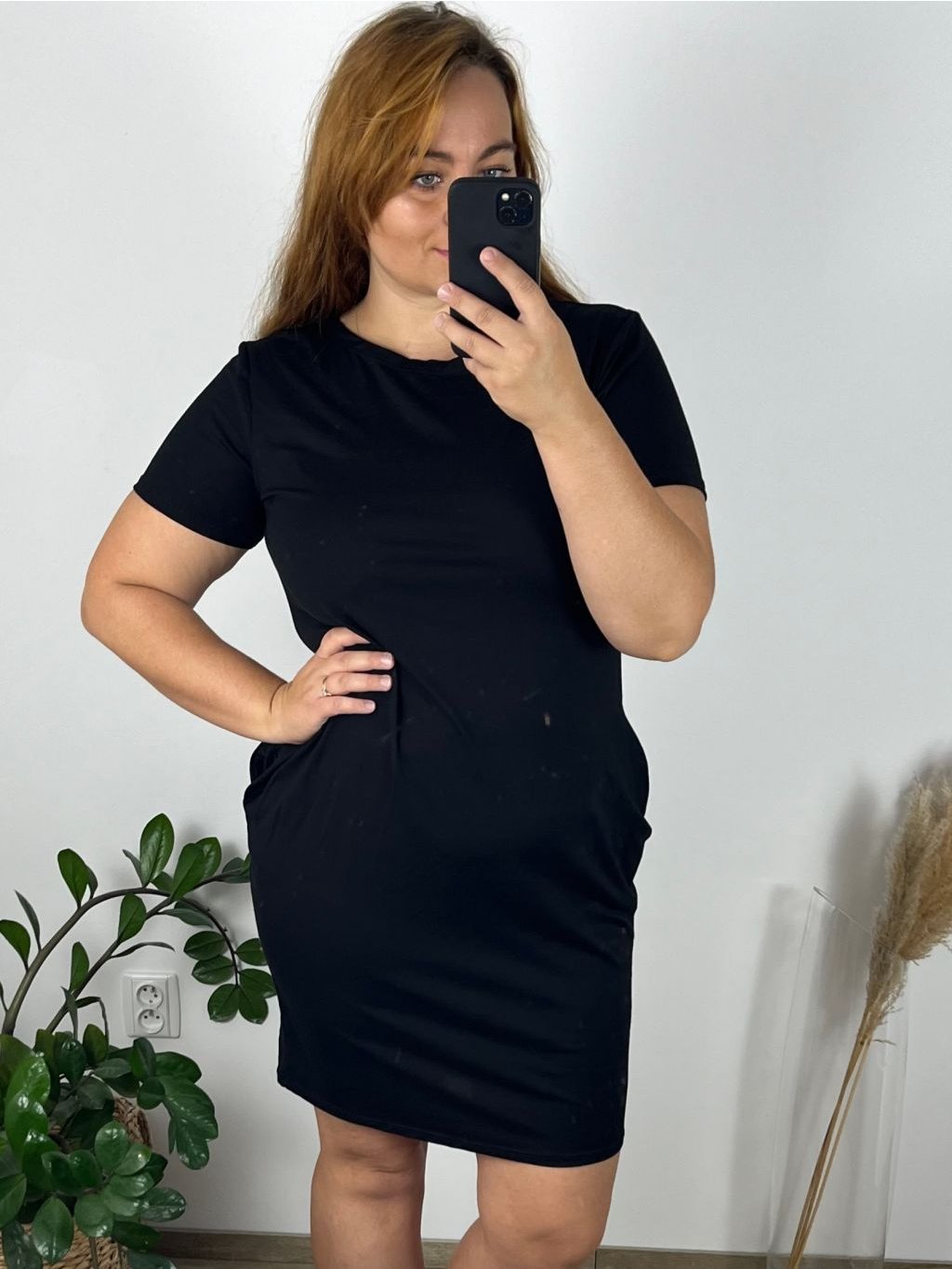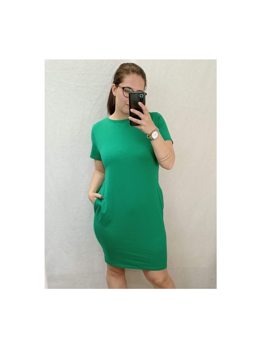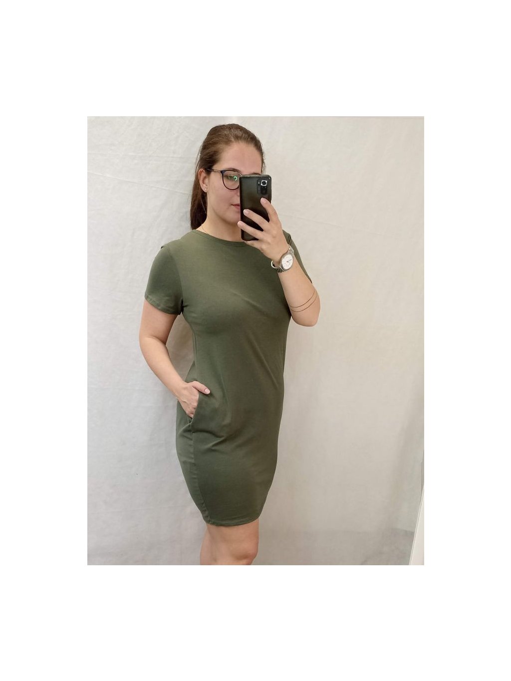 Šaty klasik krátký rukáv s kapsami dámské nadrozměr (L/XL/XXL ONE SIZE) ITALSKÁ MÓDA IMD21049