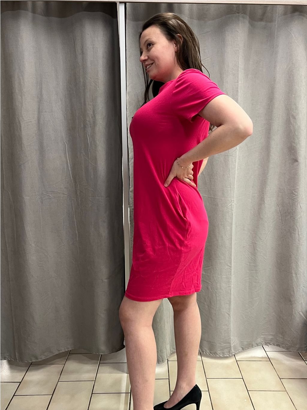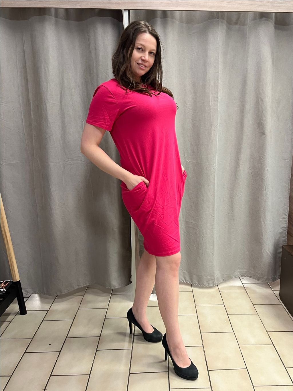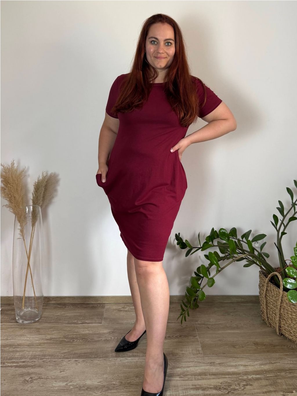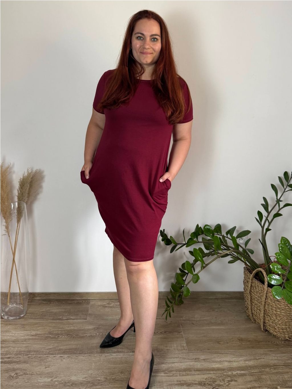 Šaty klasik krátký rukáv s kapsami dámské nadrozměr (L/XL/XXL ONE SIZE) ITALSKÁ MÓDA IMD21049