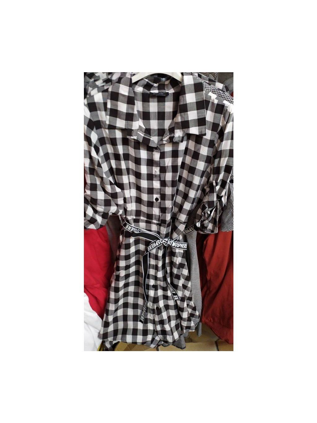 Šaty košilové 3/4 dlouhý rukáv kostka dámské (uni s-l) ITALSKá MóDA IMC20143 černo-bílá
