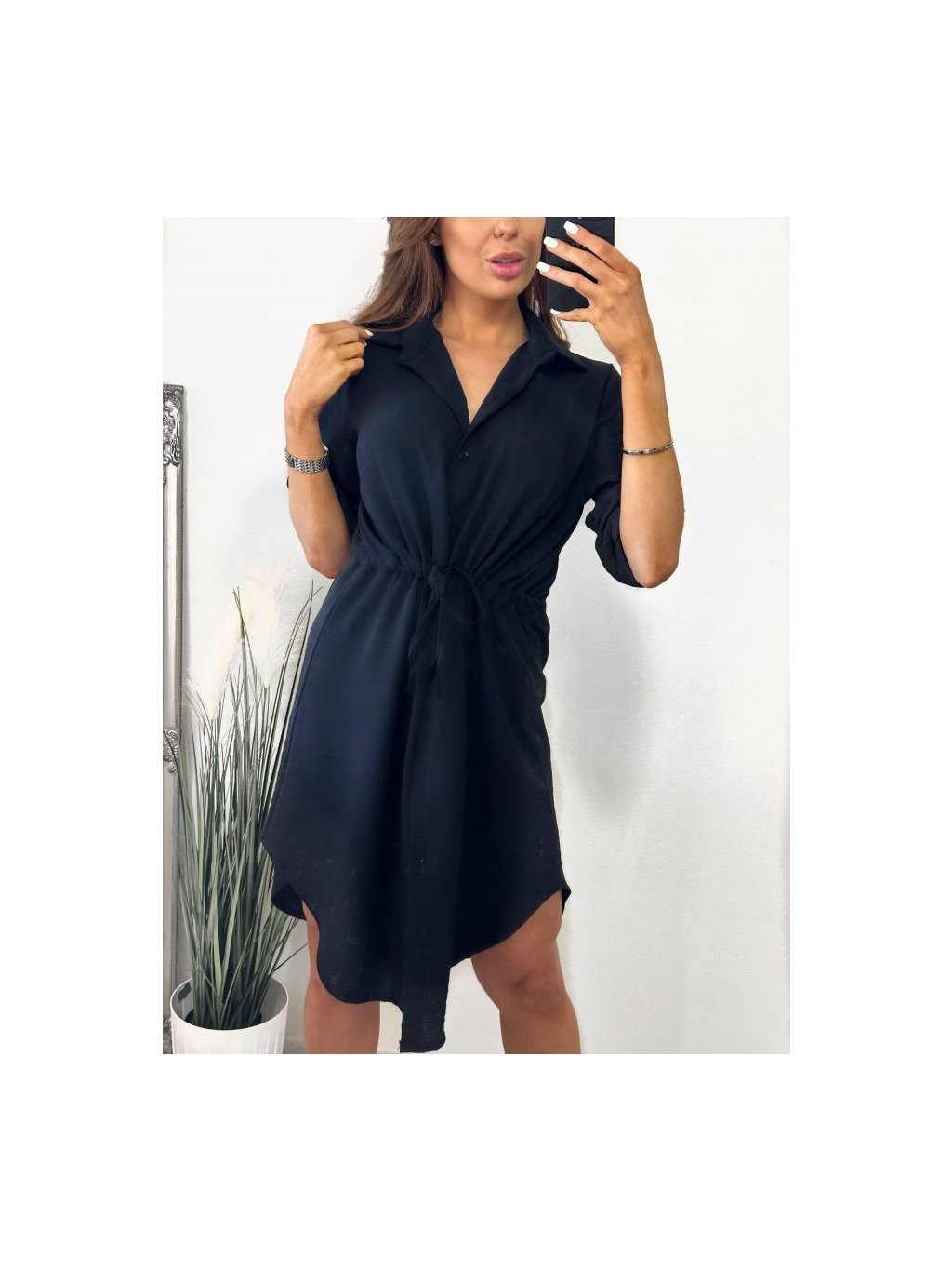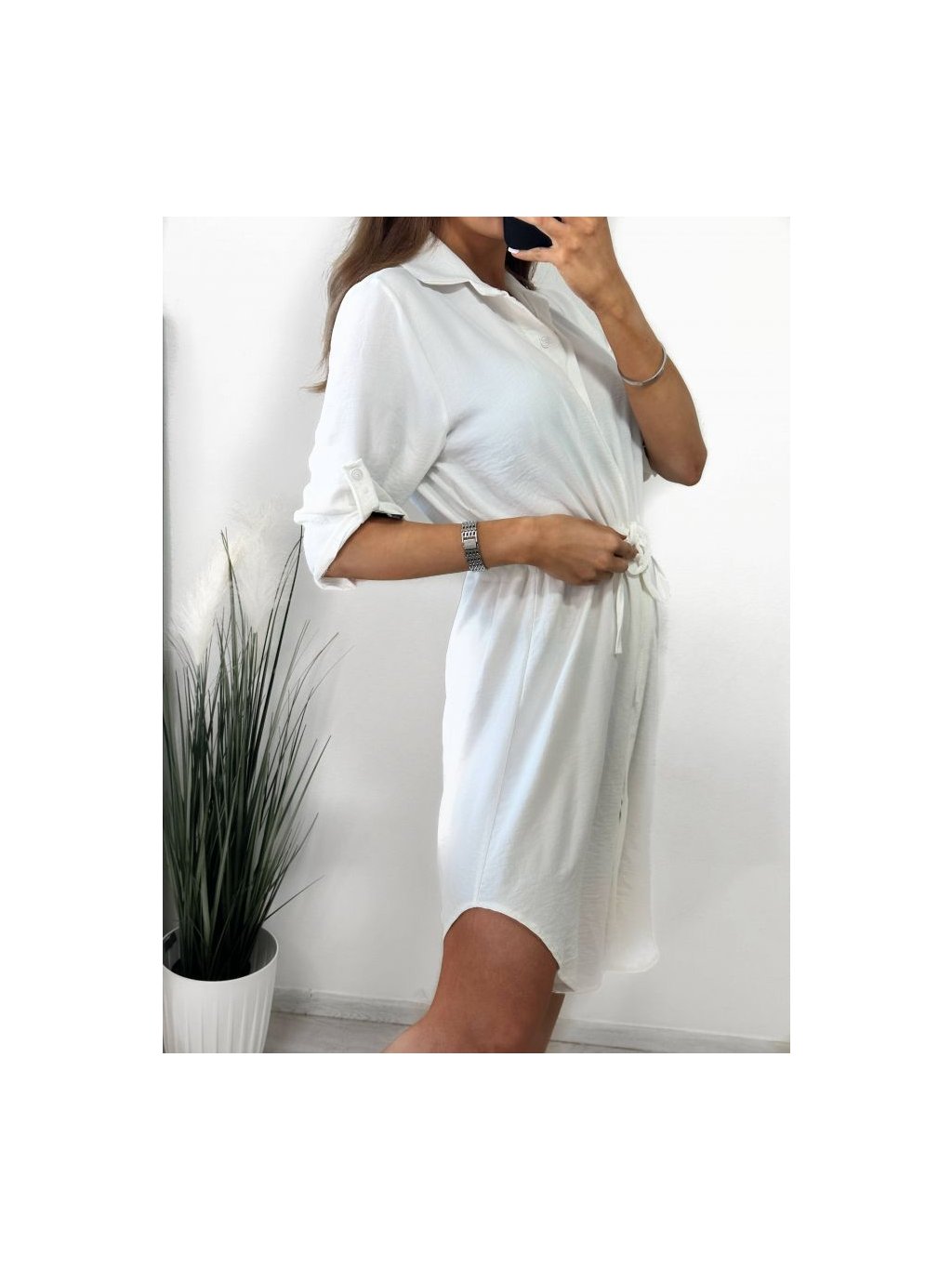 Košilové šaty s 3/4 krátkým rukávem a zapínáním na knoflíčky.