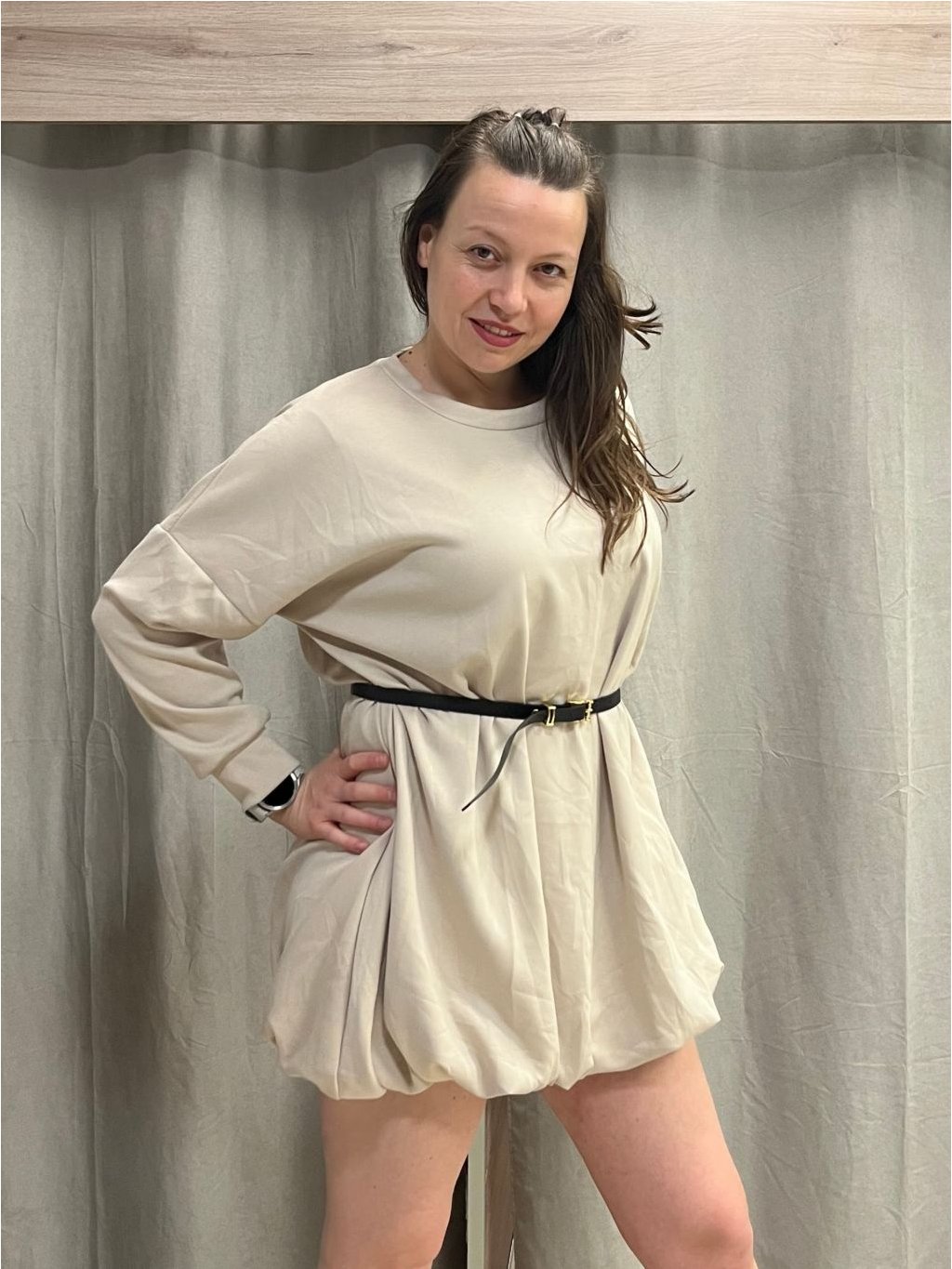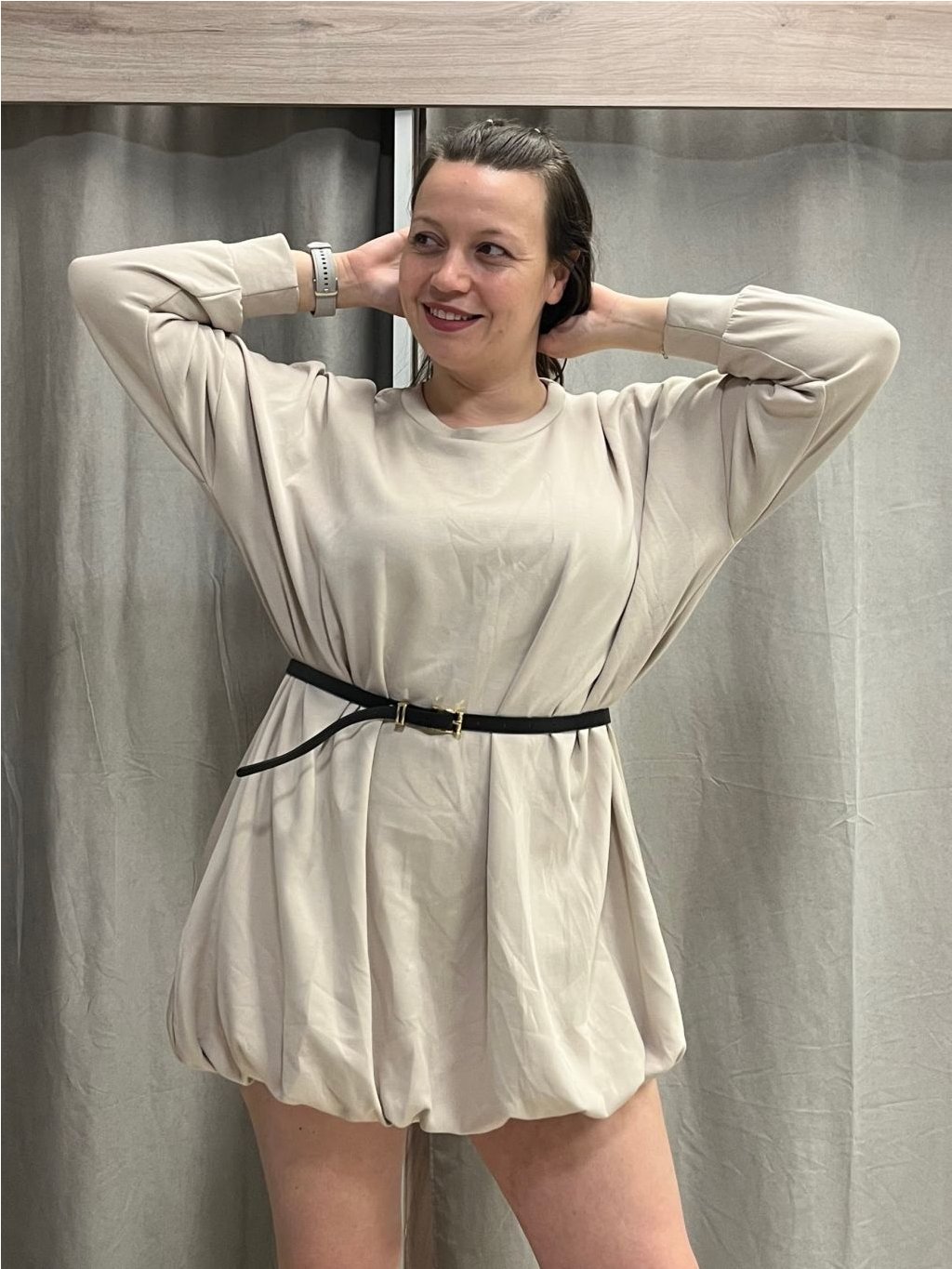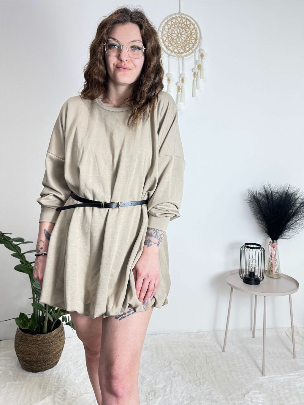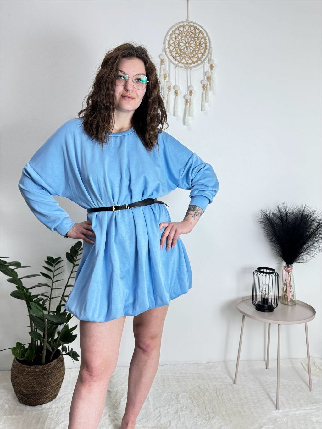 Rozměry: přes prsa: 150 cm, volné rukávy, boky: 144 cm, délka: 82 cm